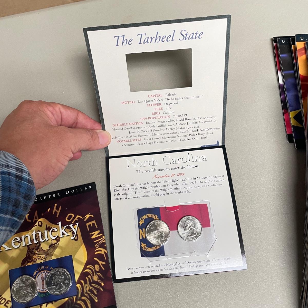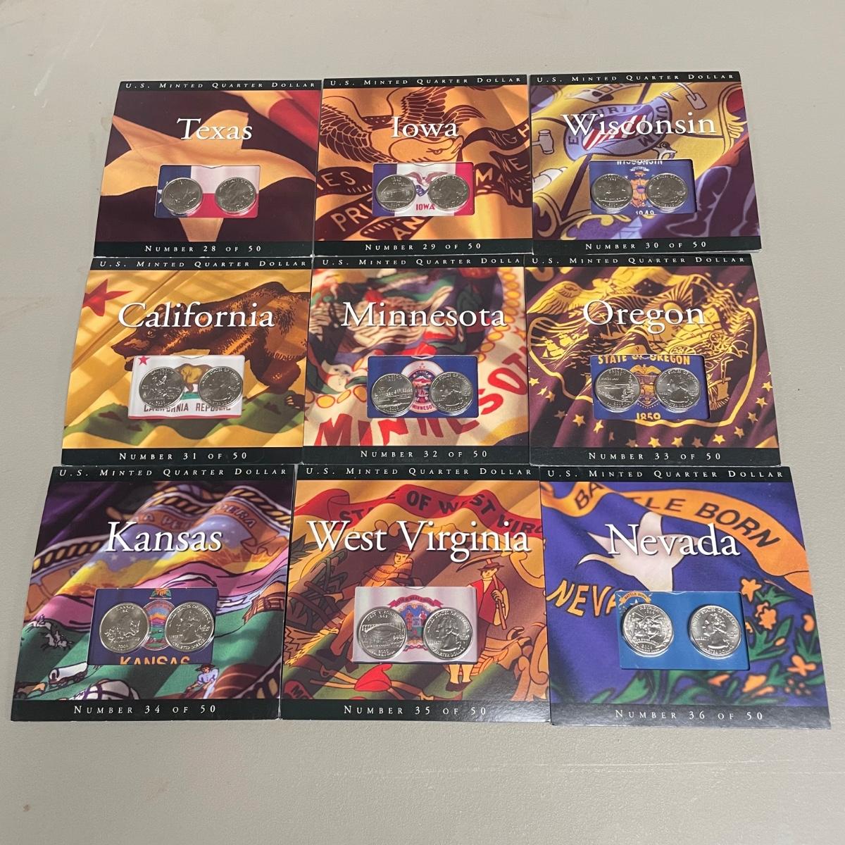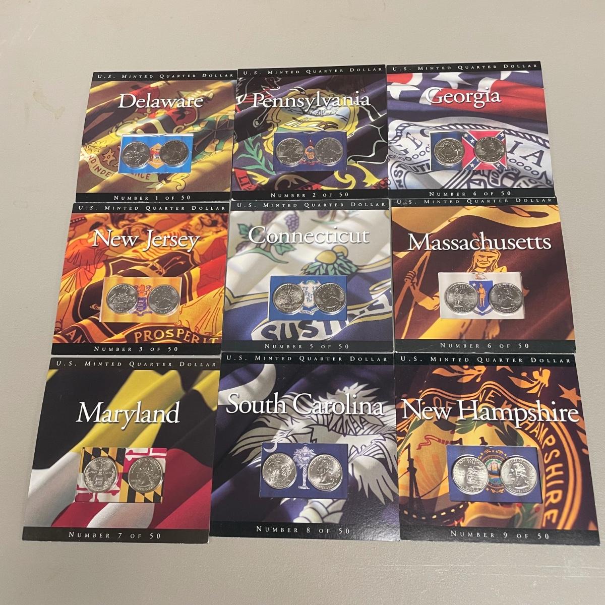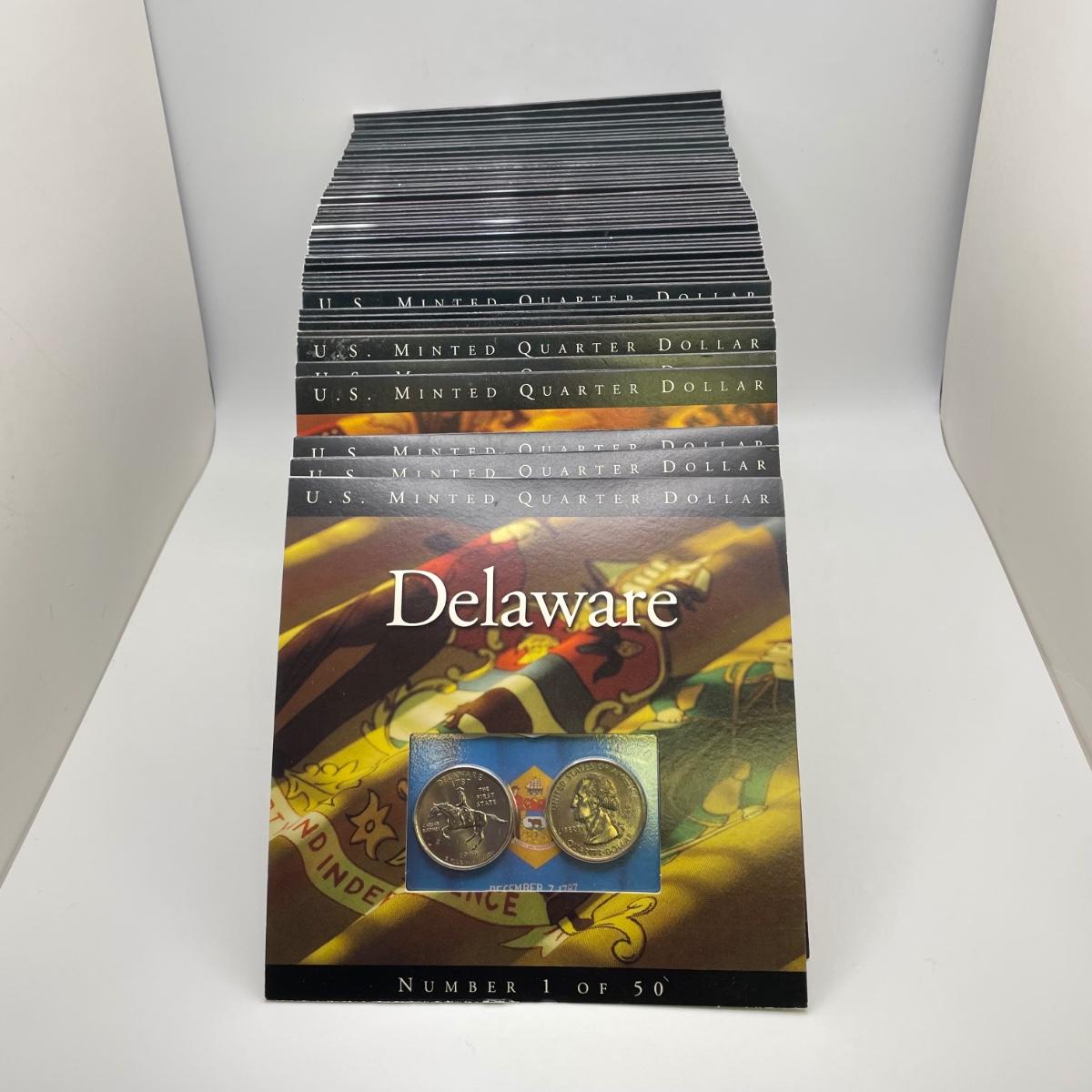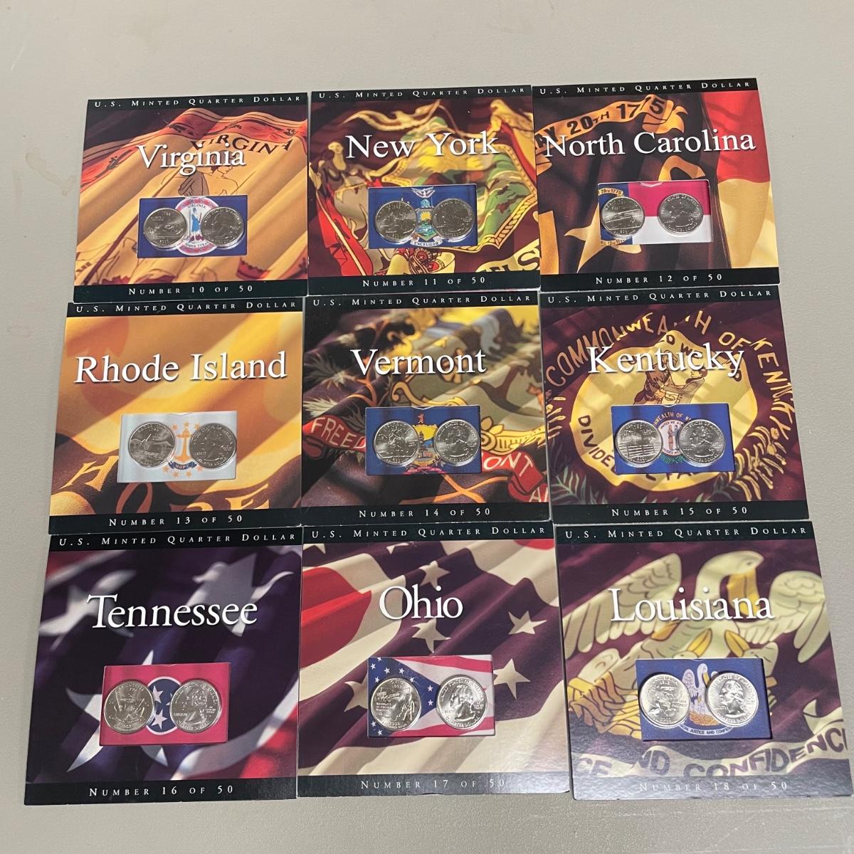A complete set of 50 two statehood quarters from Coins of America. Each pair of quarters has statehood facts and the sleeves state “both quarters are uncirculated”. See images. Starting bid is at face value. All sales are final. No returns or refunds. Please bid accordingly. Shipping available.