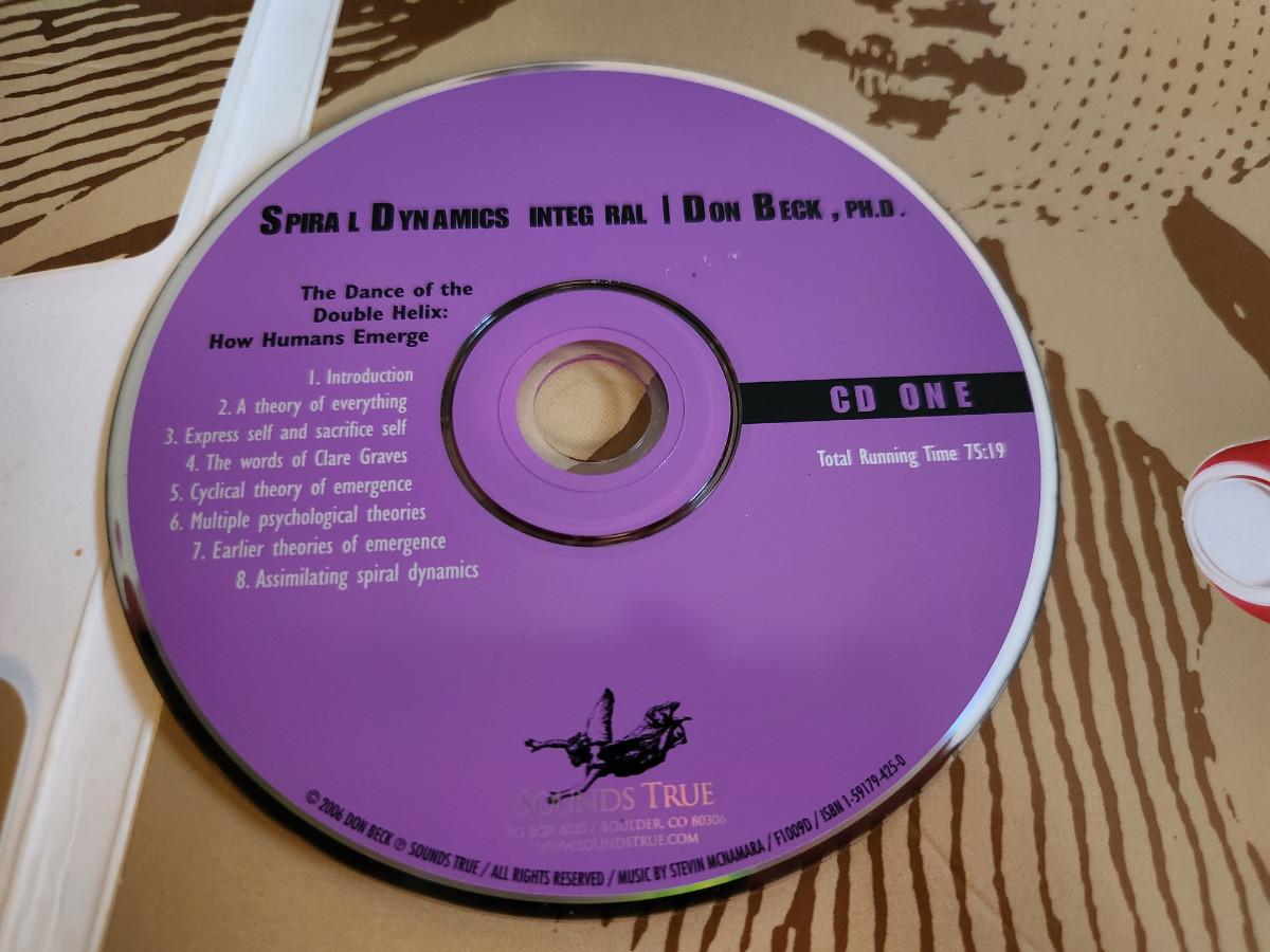 This auction lot is for the Complete set of CDs for Spiral Dynamics. This set has 2 folders each containing 3 of the CDs. Spiral Dynamics by Don Beck, PhD. Spiral Dynamics Integral (SDi) is a developmental model developed by Dr. Beck and Christopher Cowan that describes how people's values and beliefs change over time. It's based on the work of Clare Graves and explores different stages of human development and their corresponding value systems.