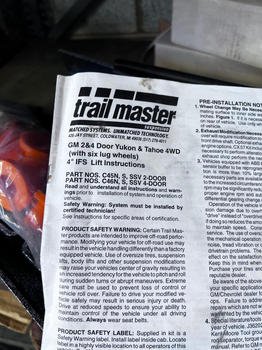 Complete Suspension Kit TRAIL MASTER For a GMC Yukon or Tahoe