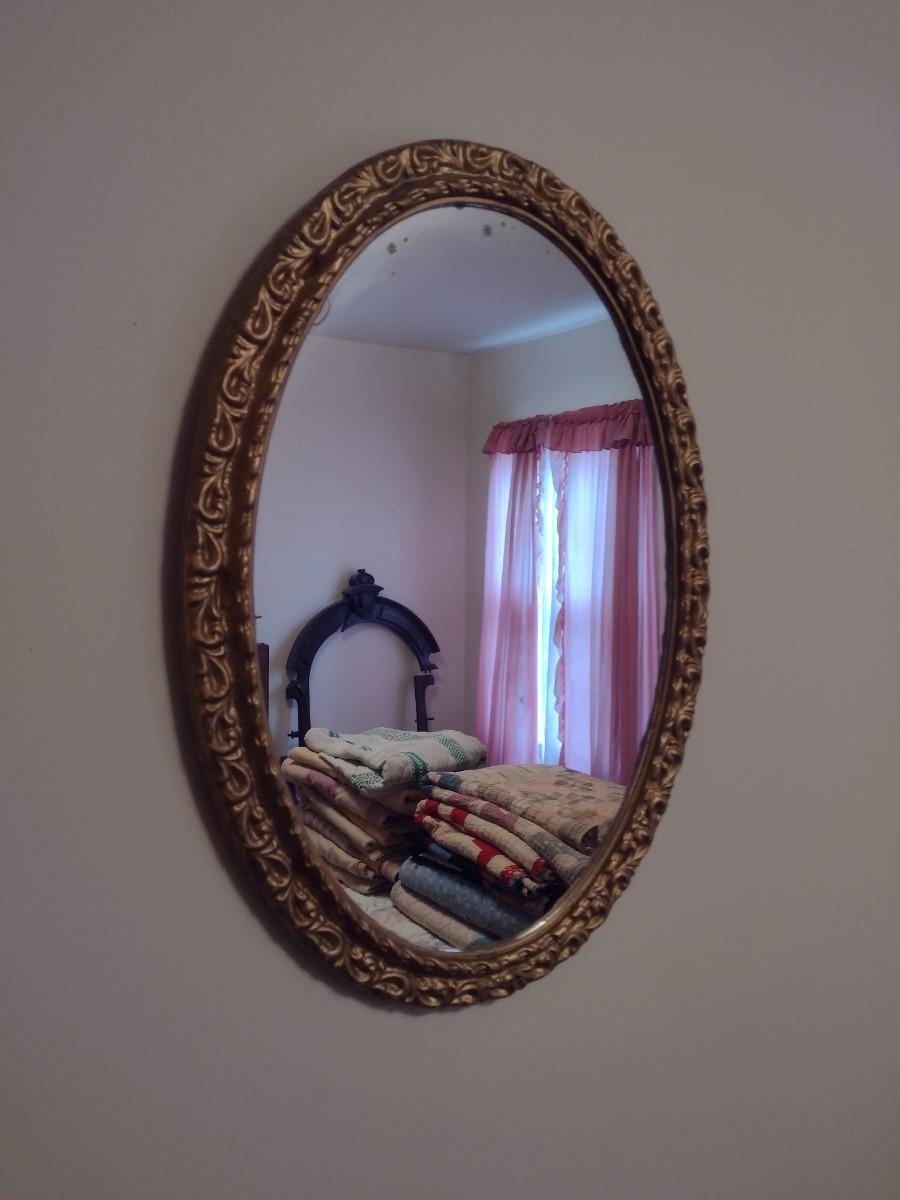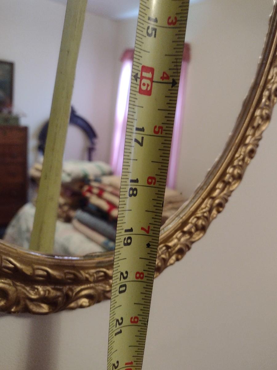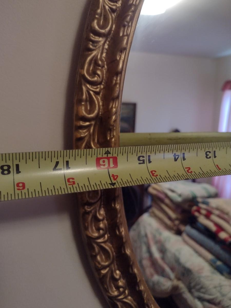 Composite Gold Framed Oval Wall Mirror. Has a few gray spots on mirror as shown
