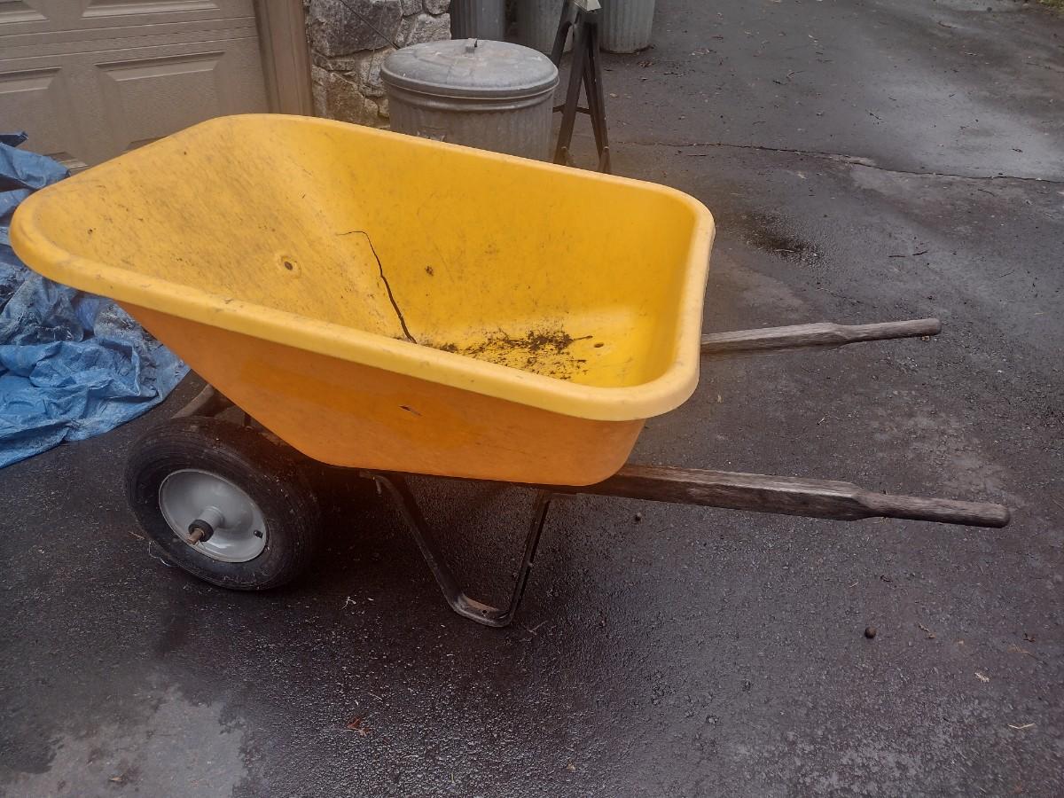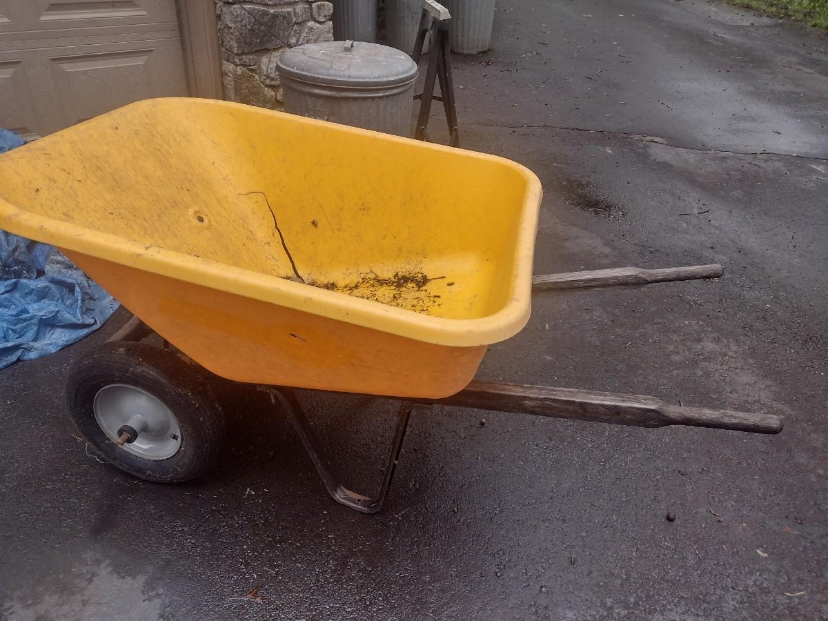 Composite Pan Wheelbarrow with Double Wheel. Pan has cracks as shown