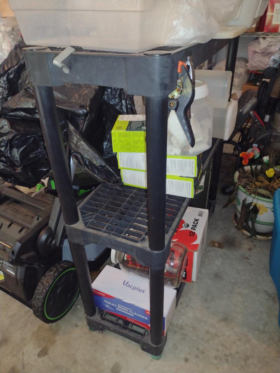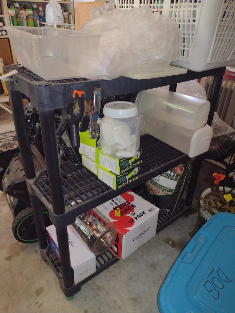 Composite Three Shelf Unit- Measures Approx 35" Wide, 12" Deep, 38" Tall (No Contents)