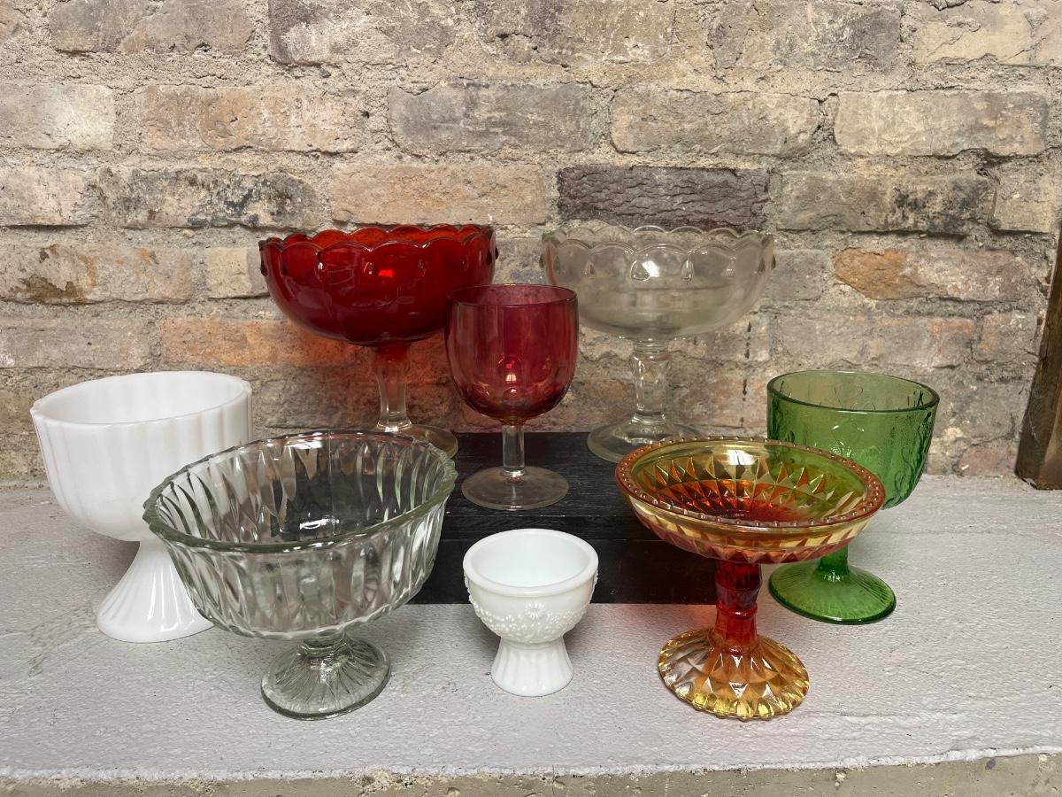 Every shape, size and type of footed compote you can think of! All of these are glass, some are flashed color...