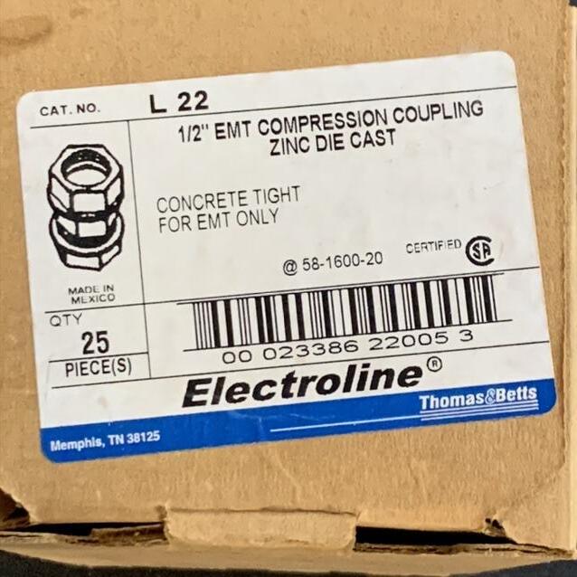 1/2" EMT Compression Coupling Zinc Die Cast (25 per box)