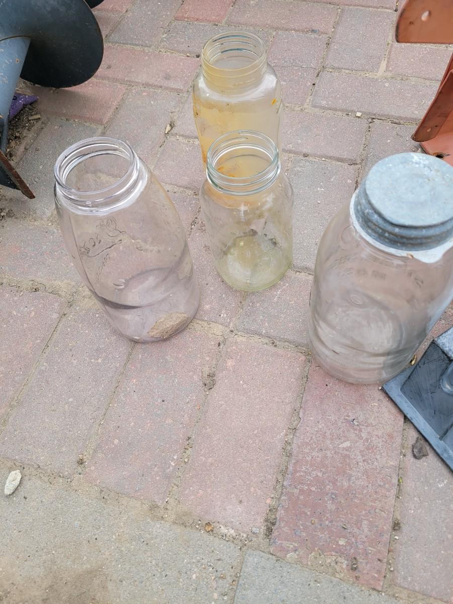 No hose with the hose reel, no cracks in the mason jars, they're pretty old.