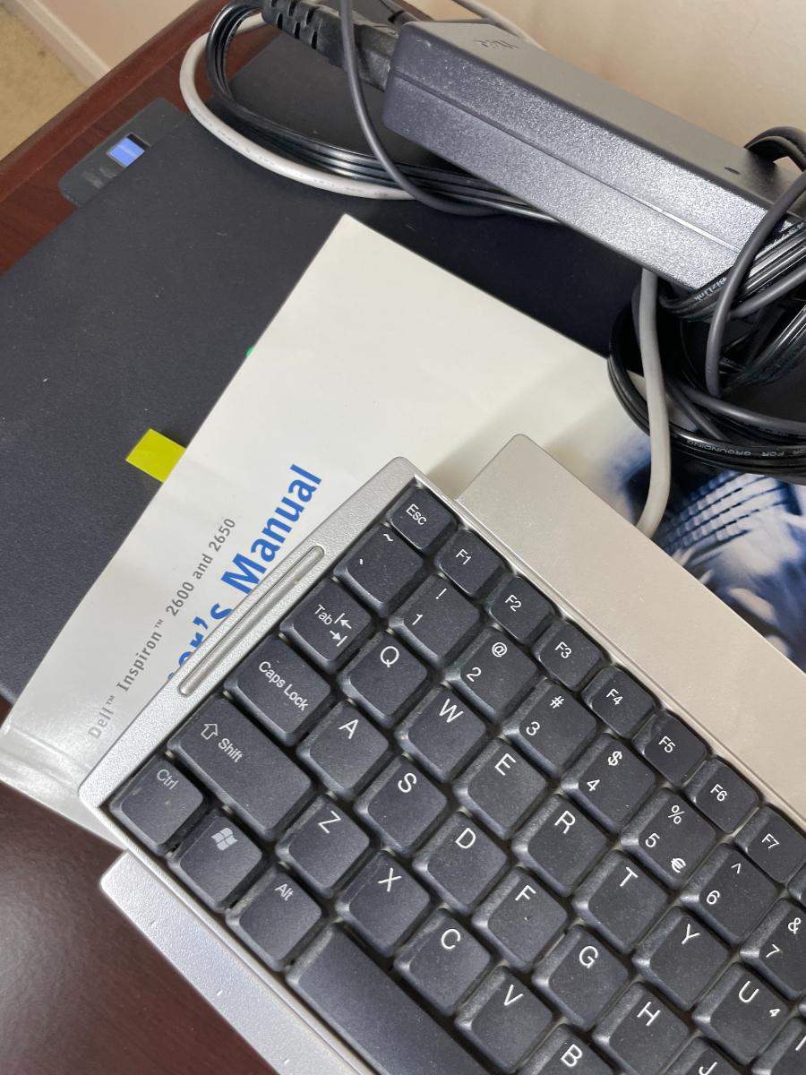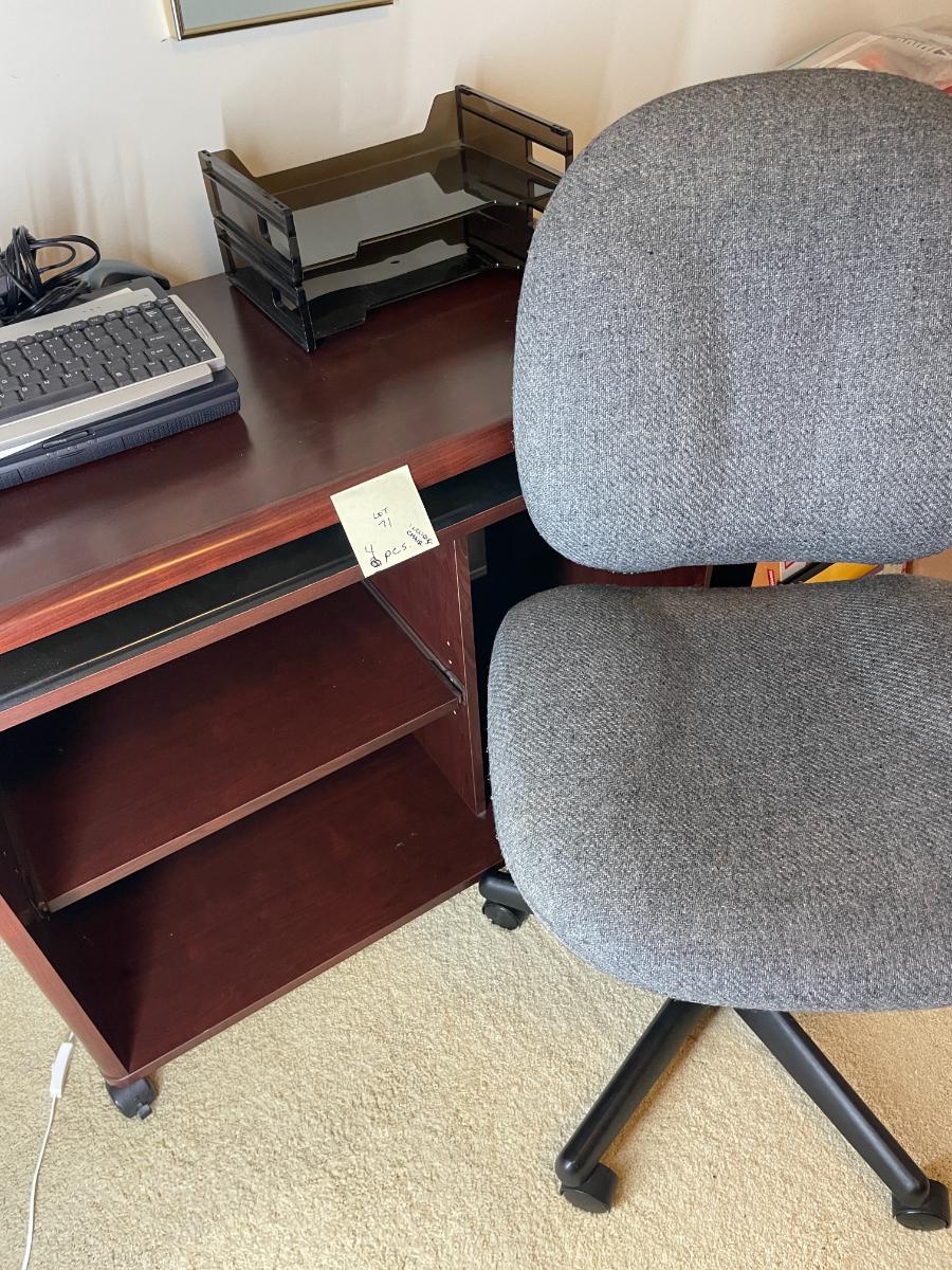 Computer Desk with Dell inspiron 2600 computer, with letter tray and office chair - 4 pieces