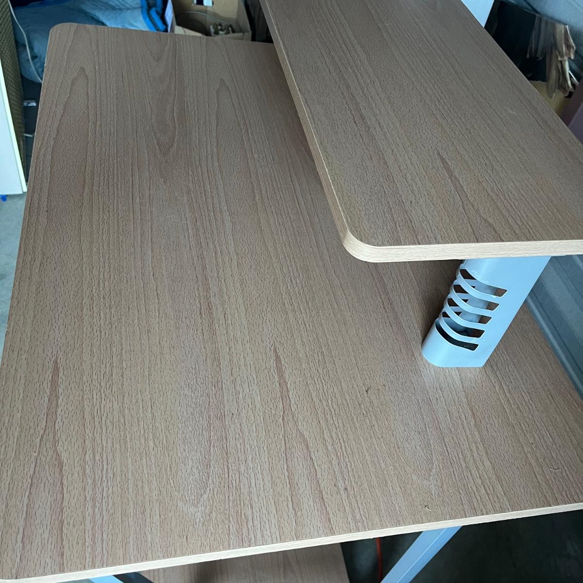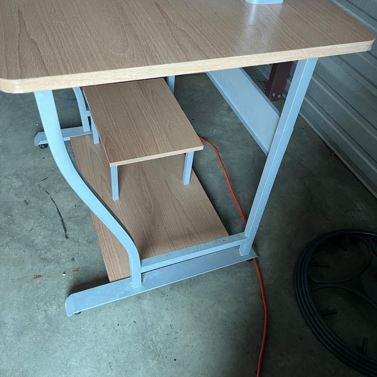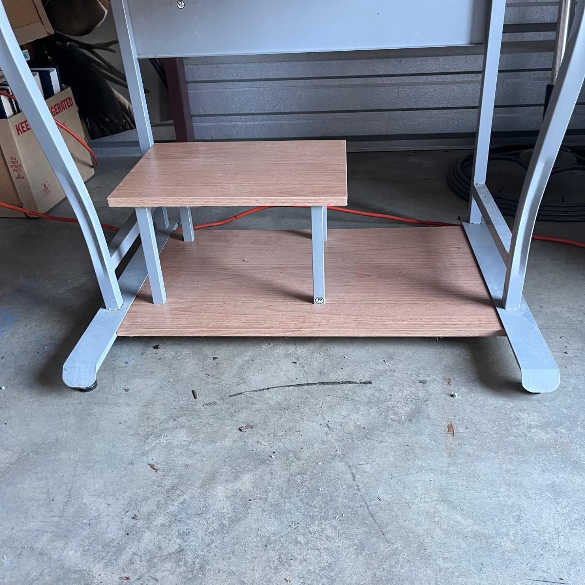 Lot includes a metal and press board computer desk with sliding keyboard drawer and raised monitor stand. Desk measures 23.5” x 35.5” x 38”.