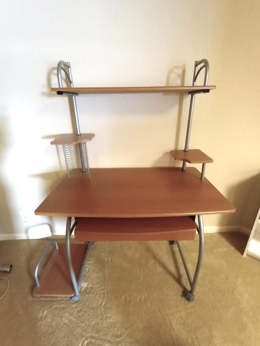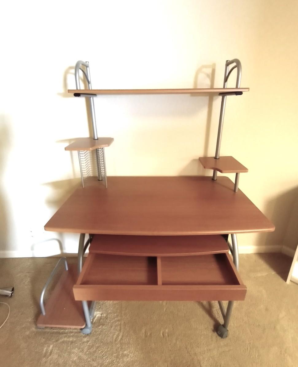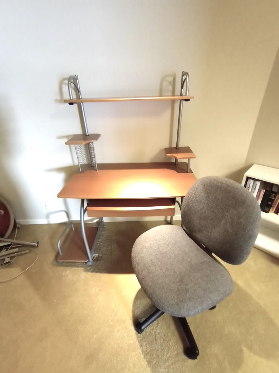 COMPUTER DESK WITH DRAWER APPROX.51X25X59 AND ADJUSTABLE DESK CHAIR BOTH IN GOOD CONDITION