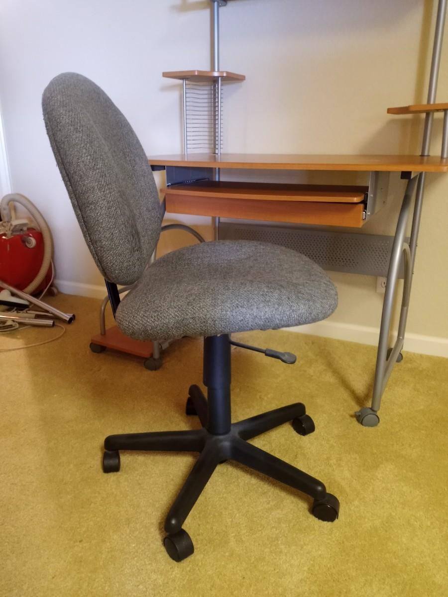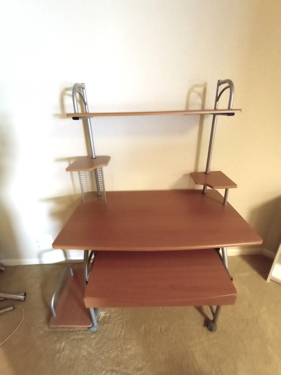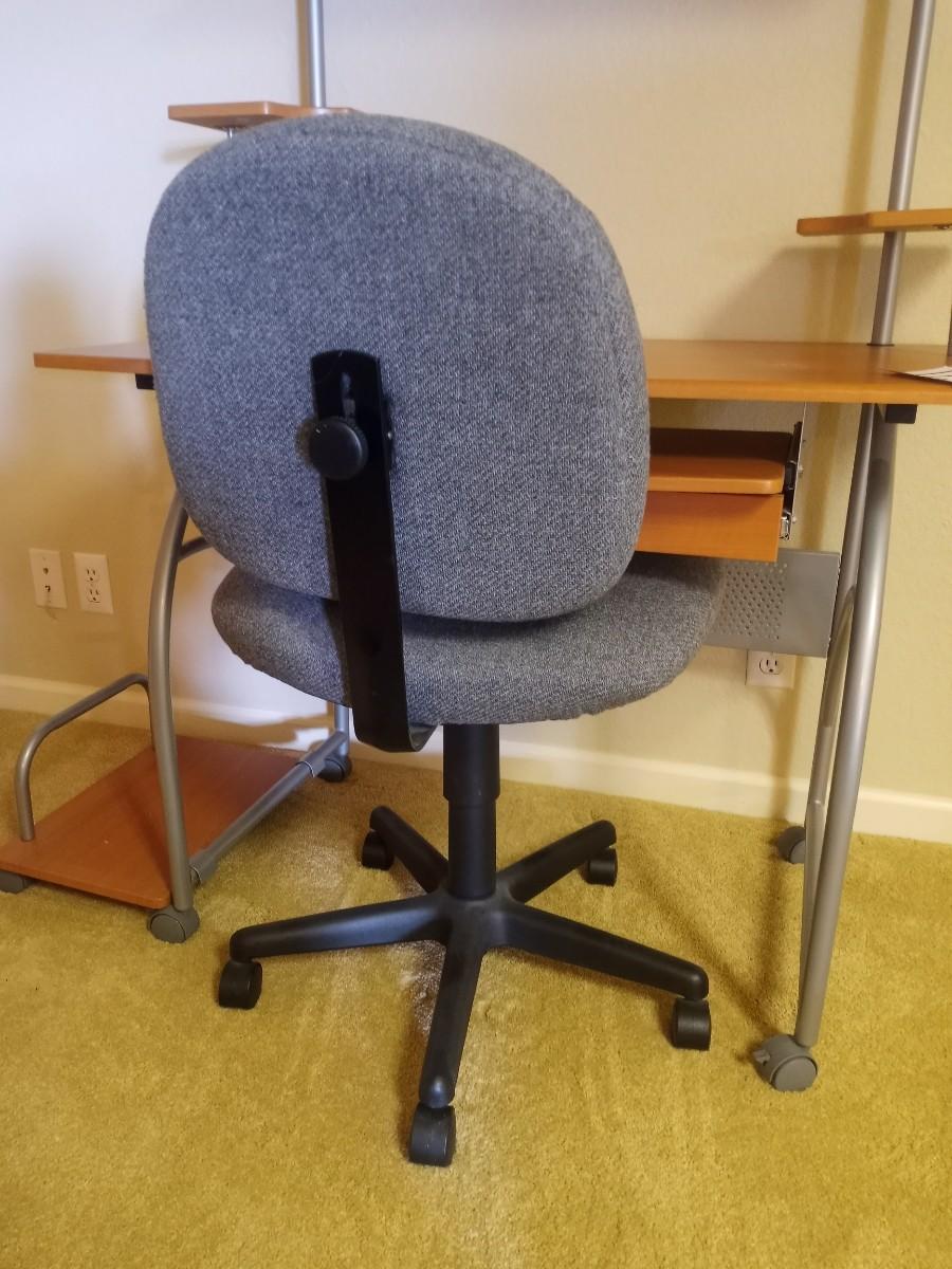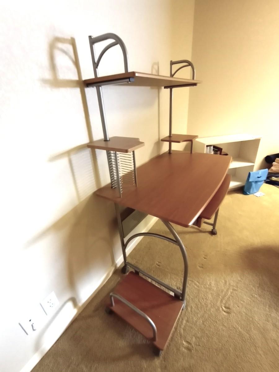 COMPUTER DESK WITH DRAWER APPROX.51X25X59 AND ADJUSTABLE DESK CHAIR BOTH IN GOOD CONDITION