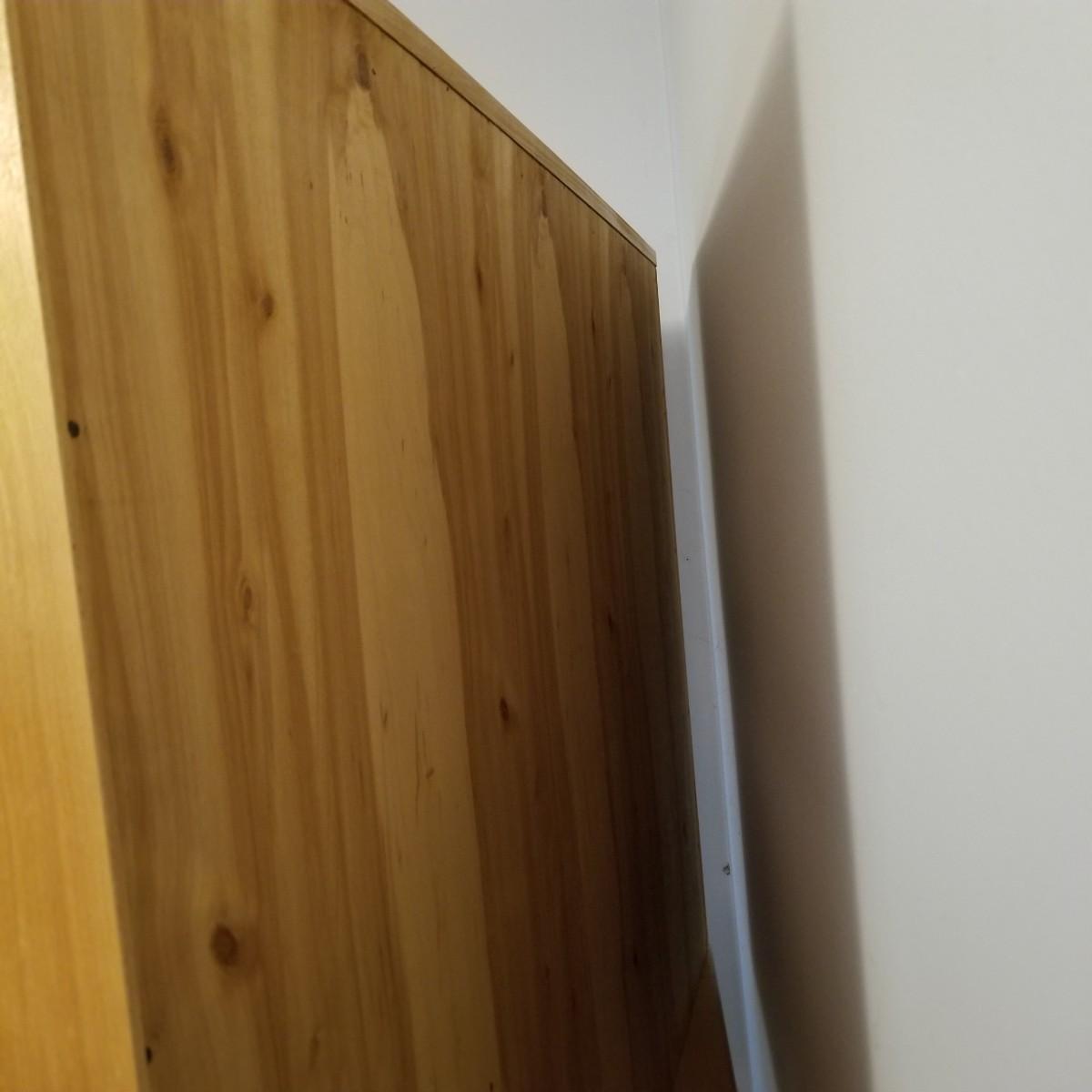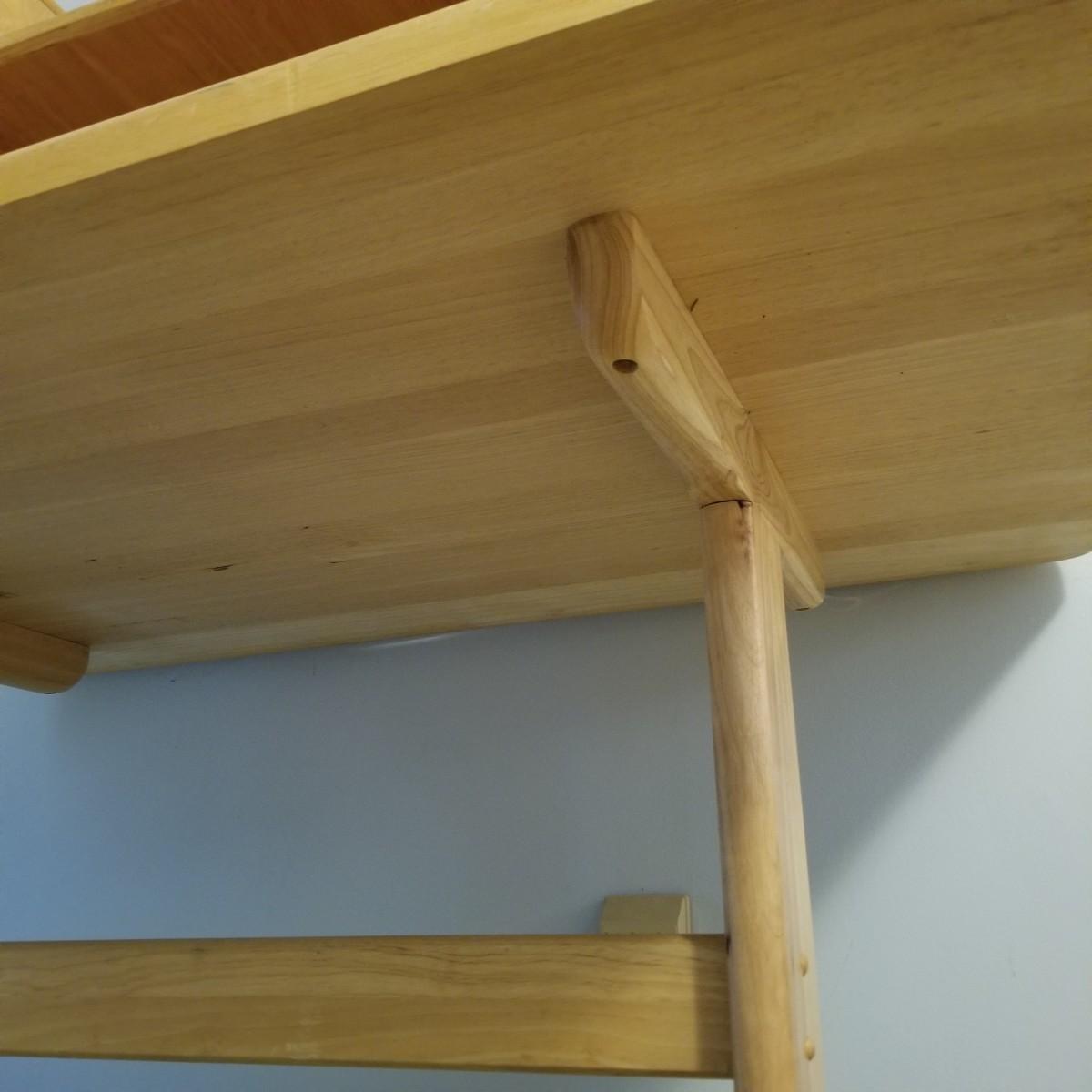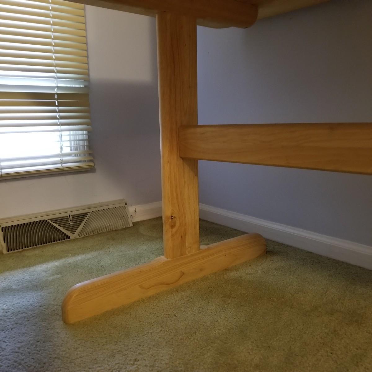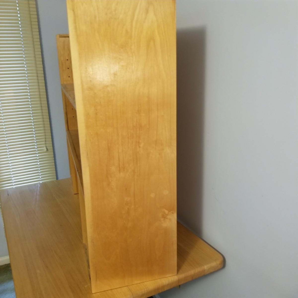 One maple colored desk with separate hutch top. Desk is pedestal style, hutch has openings for cable access, adjustable shelves. 50"x30"x66" with hutch. Desk height 29". Both are solid wood. See photos for details. Local pickup only, will need help to move.