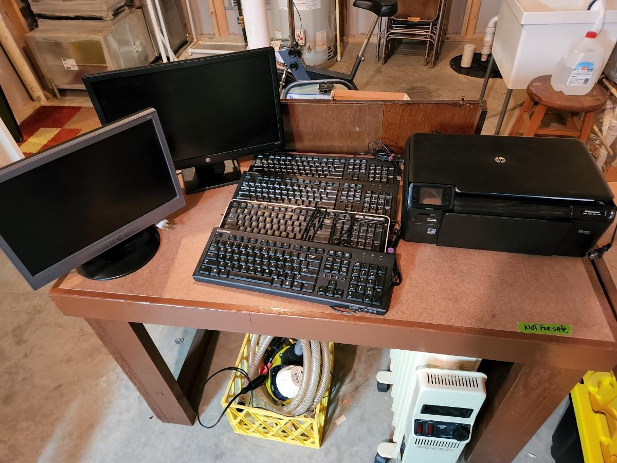 Computer Lot 2 Monitors 4 key boards , HP 4 way Printer Copy Scan Web