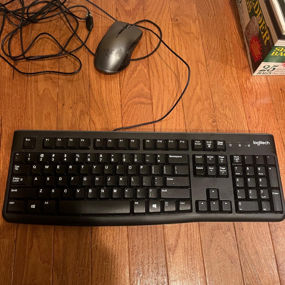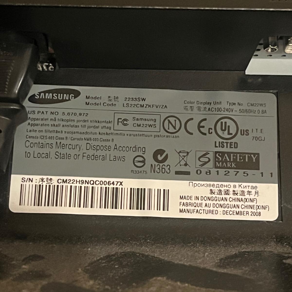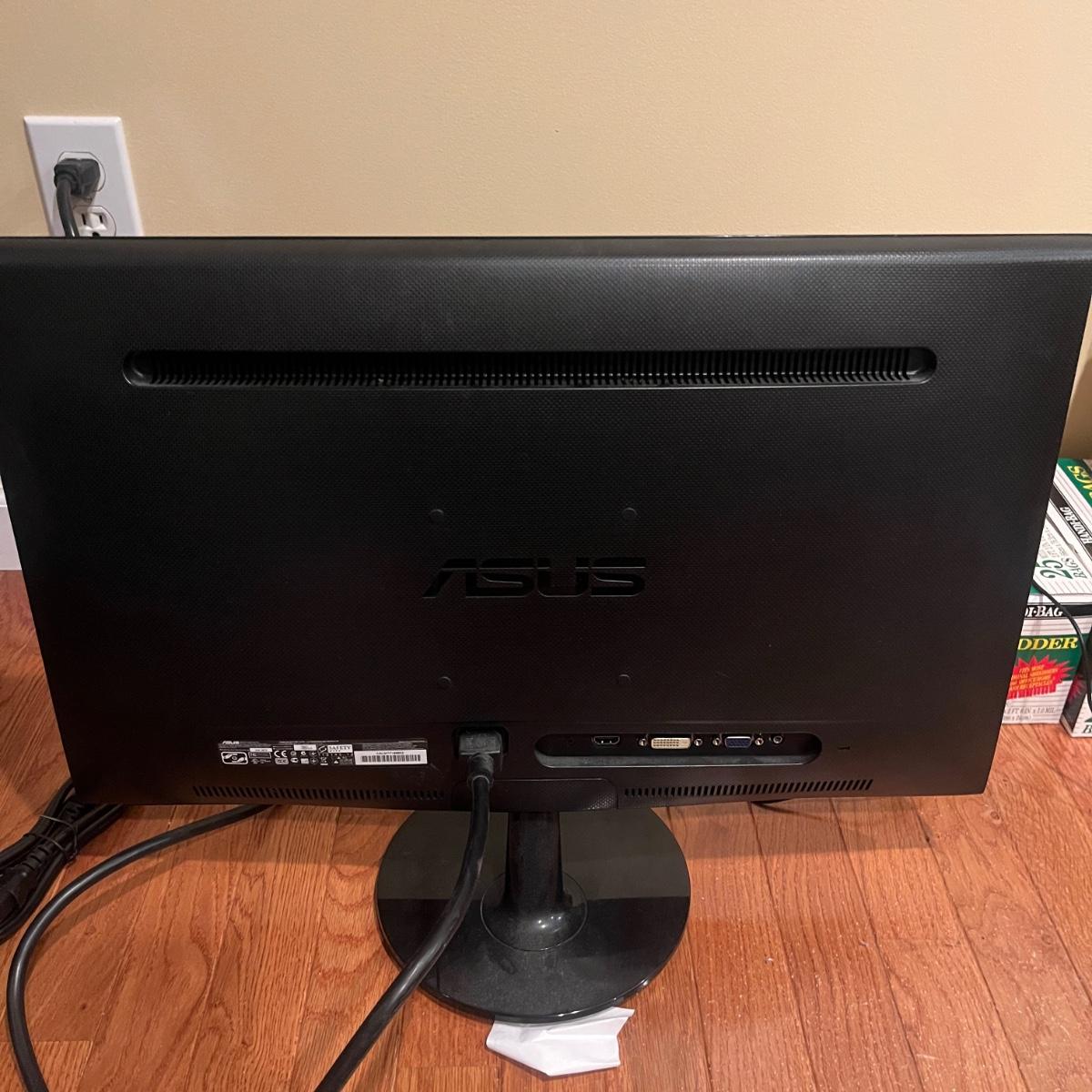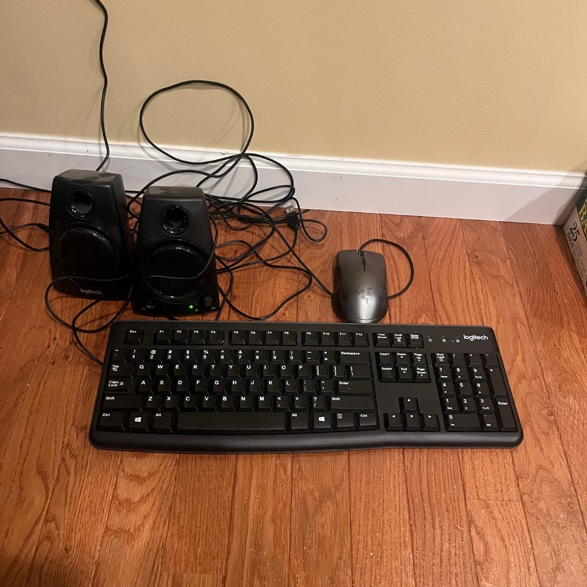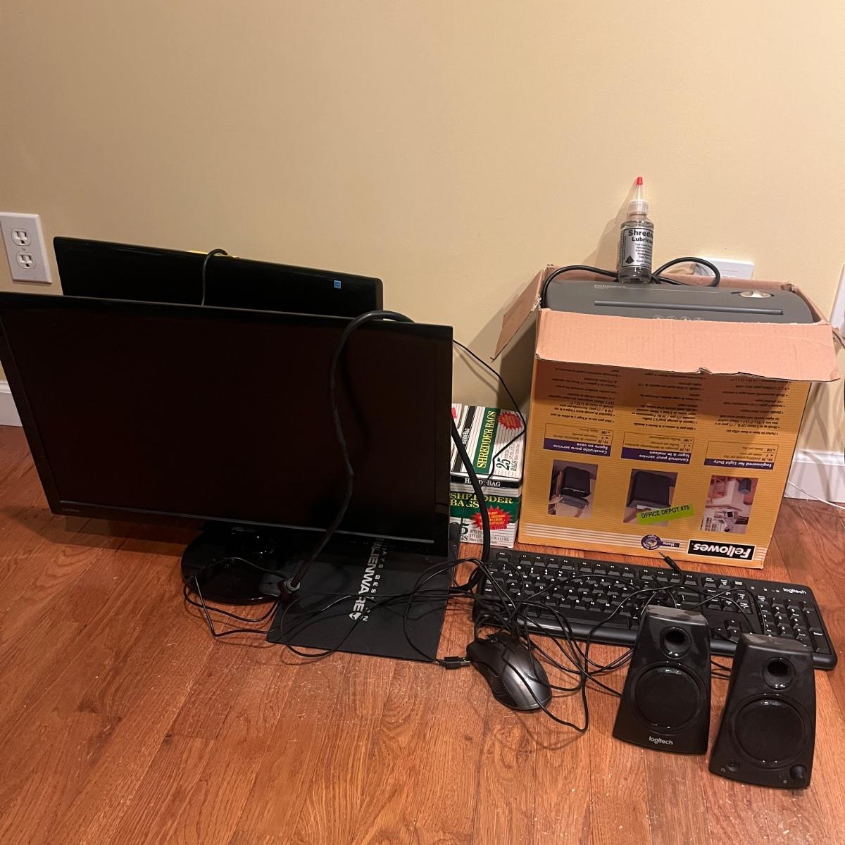 Lot includes a Asus 23” monitor, Samsung 22” monitor, Fellowes paper shredder, Logitech keyboard and speakers and a Razer mouse. Monitors, speakers and shredder all powered on when plugged in.