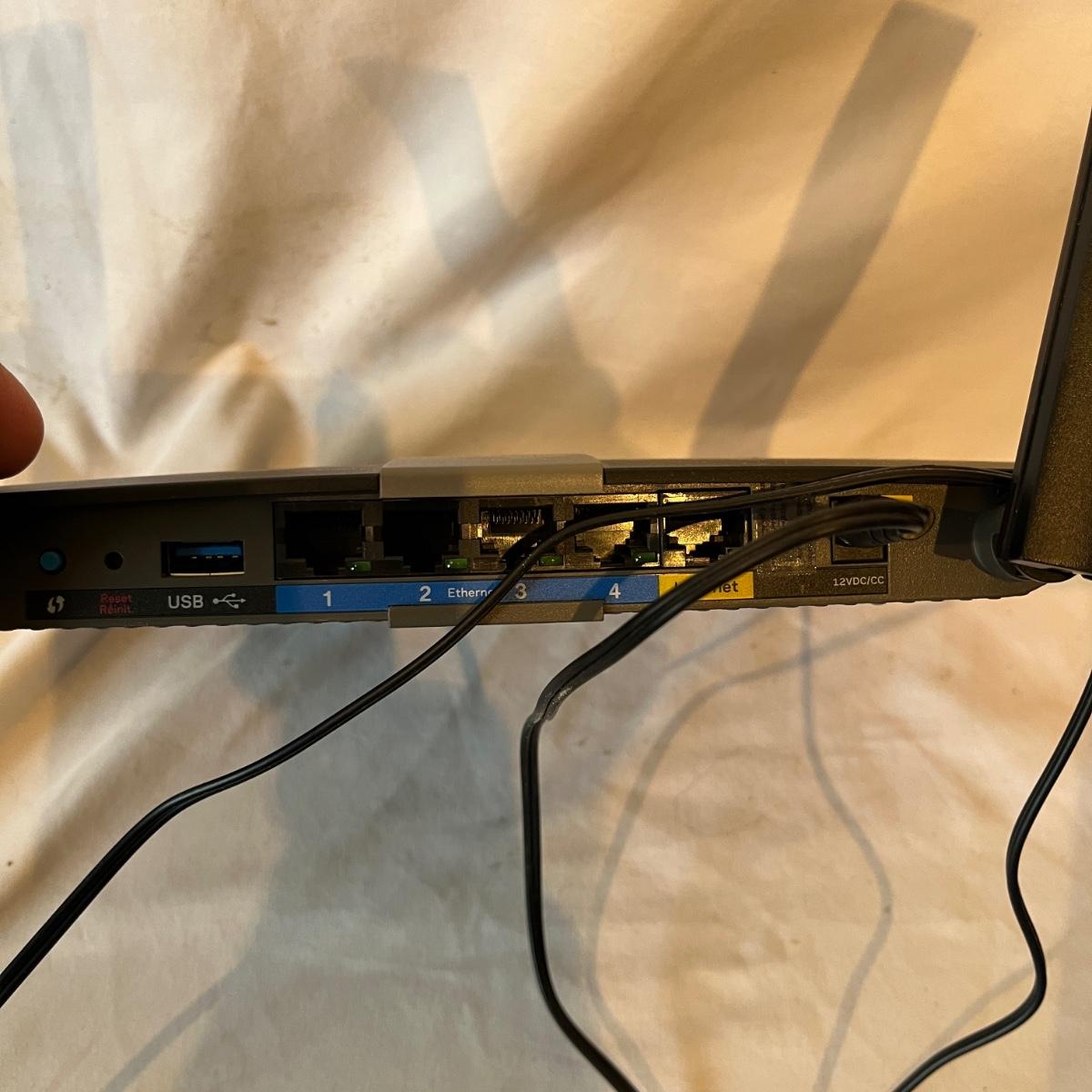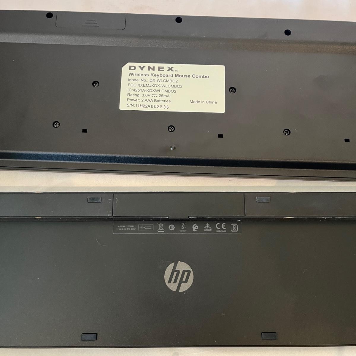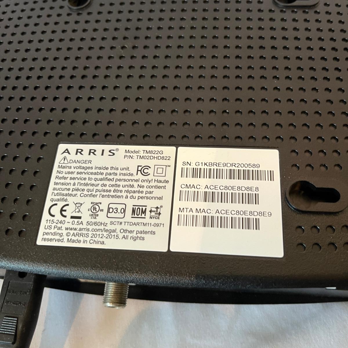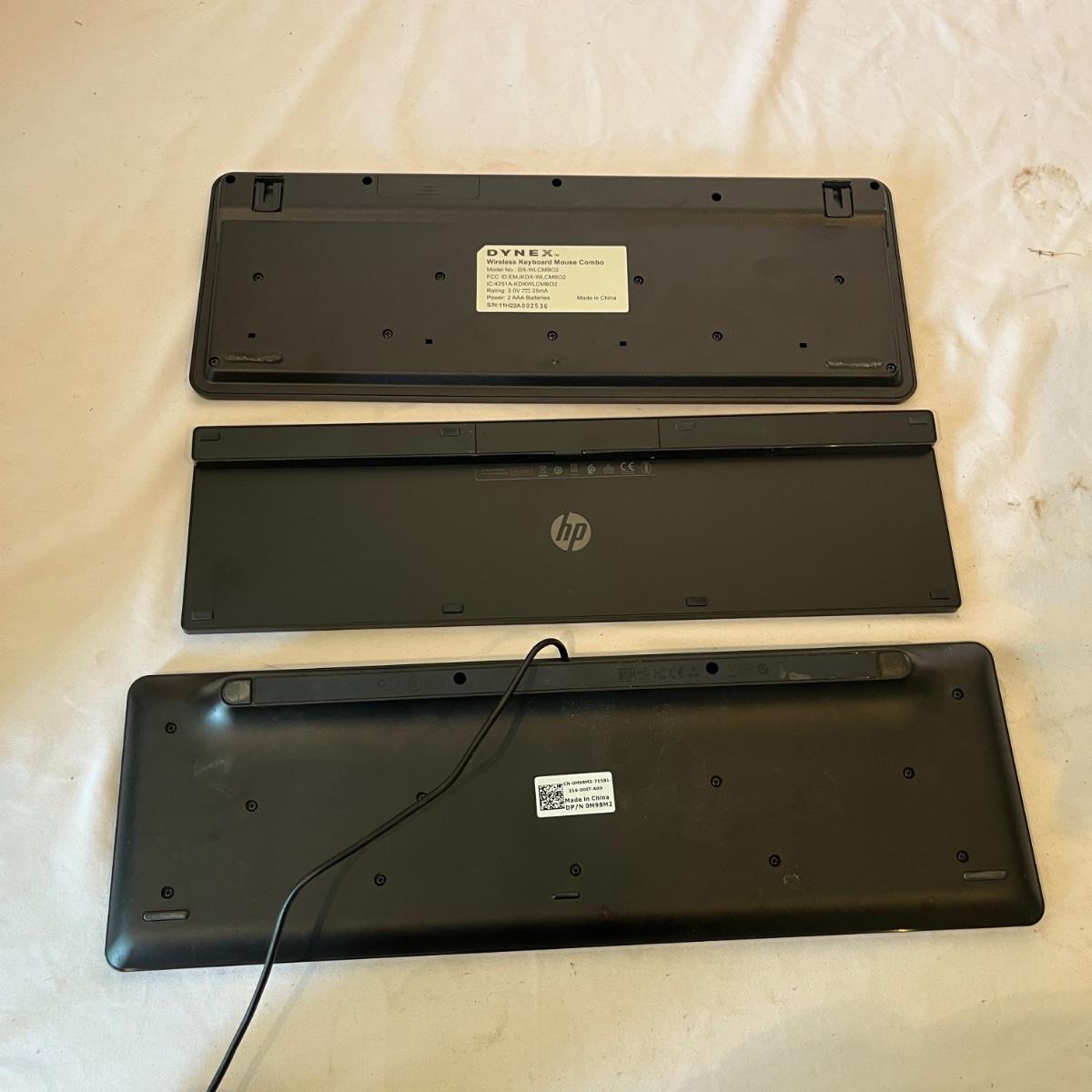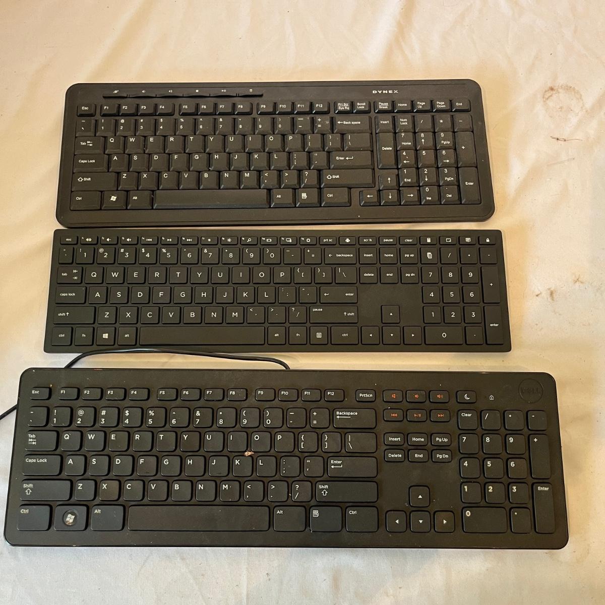 Lot includes a APC battery backup, two cordless keyboards Linksys and Arris routers, Gigaware camera and USB port, Logitech computer camera, and more APC battery backup measures 11” x 8” x 5”H and appears to need new battery. Both routers powered on when plugged in.