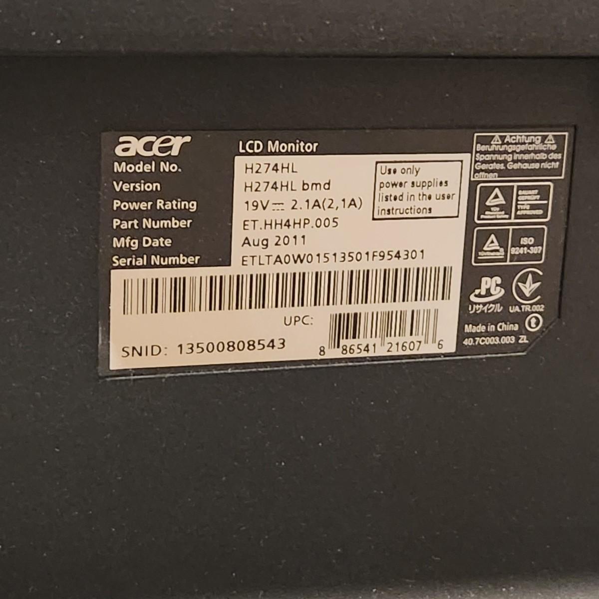 Computer tower Windows Pro 10, Acer LCD Monitor H274hl, Keyboard & mouse