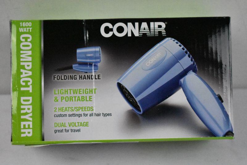 Conair 1600 Watt Compact Hair Dryer with Folding Handle, Lightweight & Portable - New