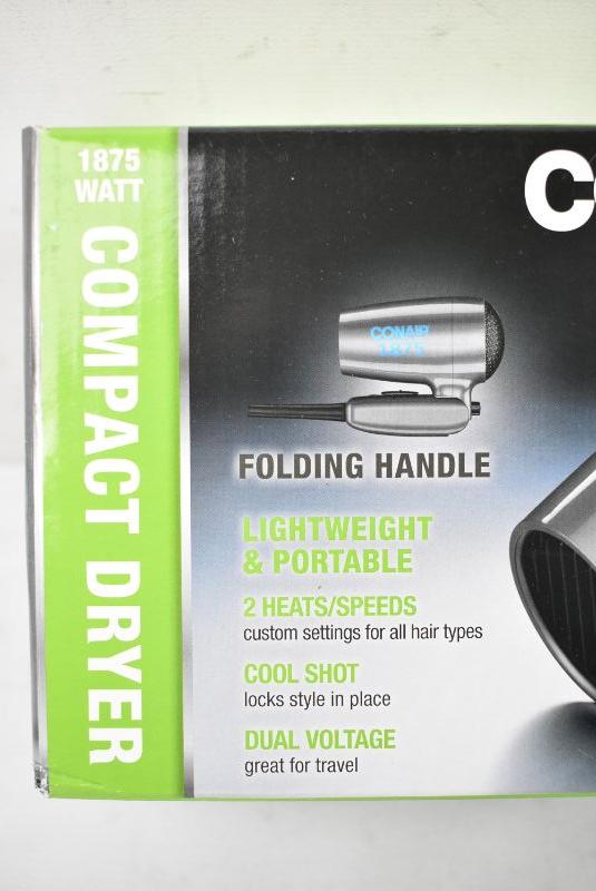 Conair Compact Folding Handle Hair Dryer, 1875W, 124TLN, $15 Retail - New