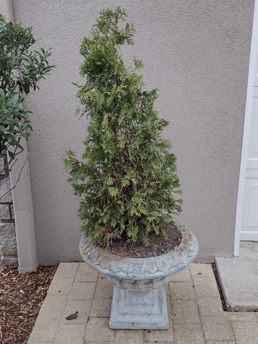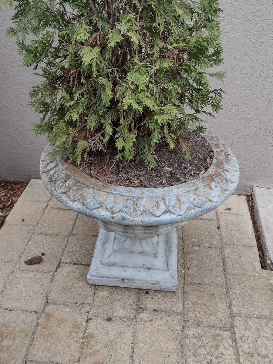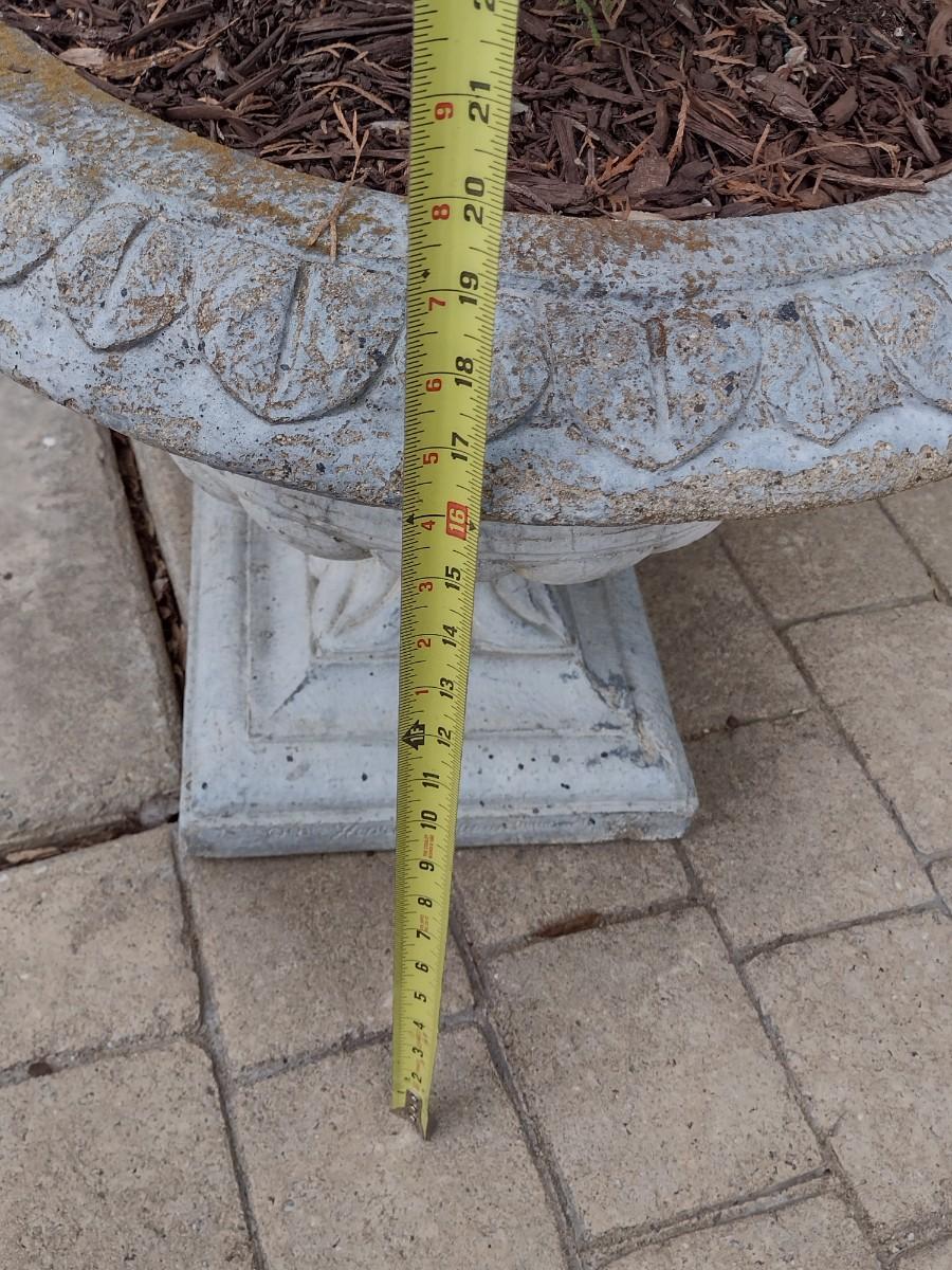 Large Footed Concrete Planter Choice B these are extremely heavy and will need assistance to remove. Outside at driveway