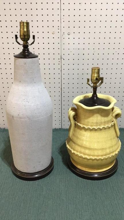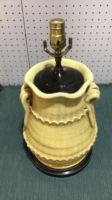 Concrete lamp..24 inch..wooden base metal cap..Yellow Lamp..18 inch..crackle glaze..no harps..