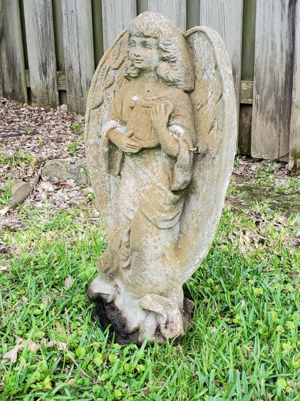 Concrete angel with small harp