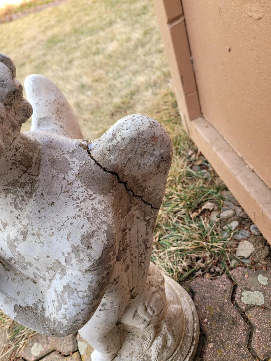 One wing has been broken but is epoxied on. See photos, heavy