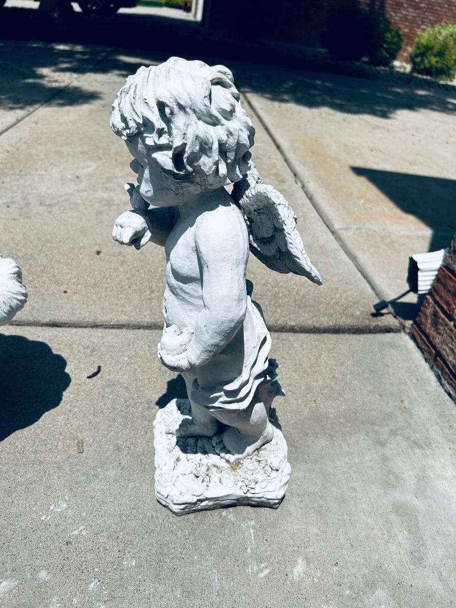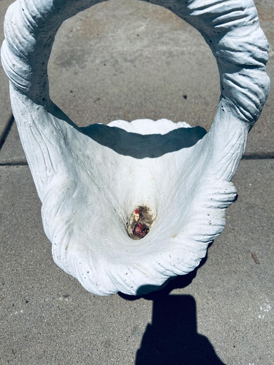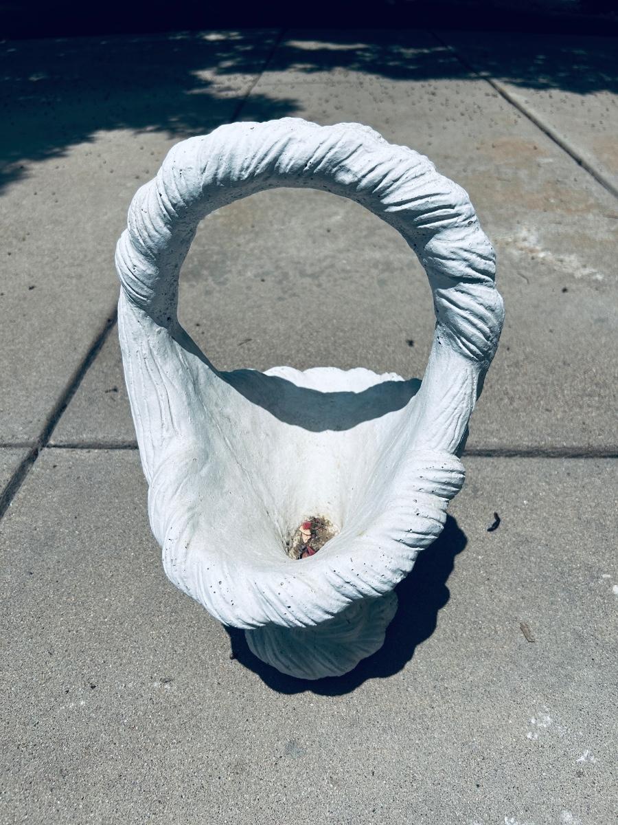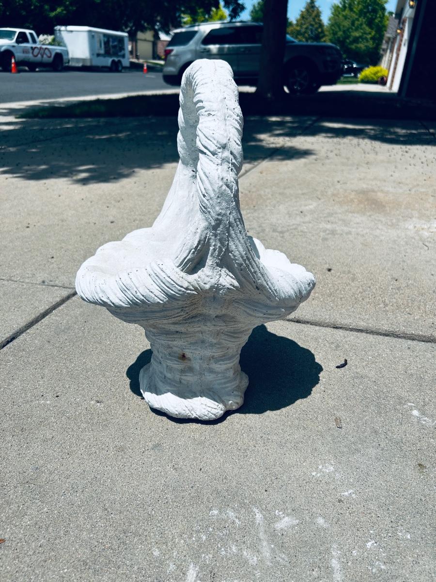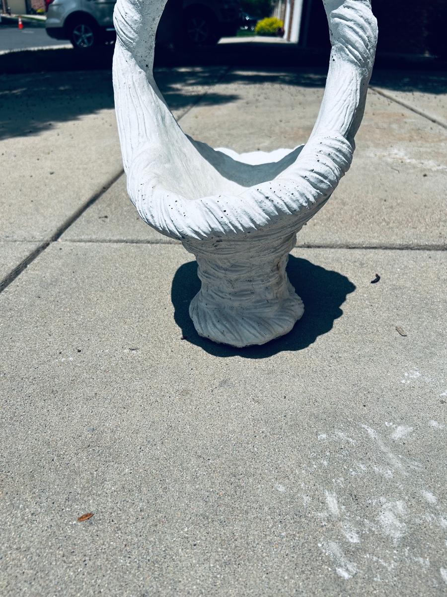 They are both 19” tall There is a hole straight trough the basket as if it were part a fountain.!!