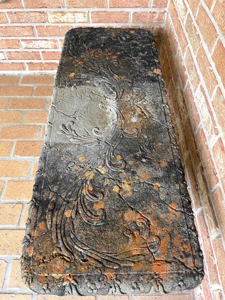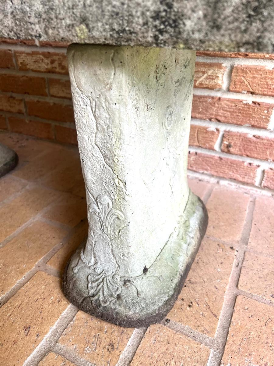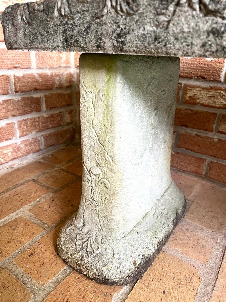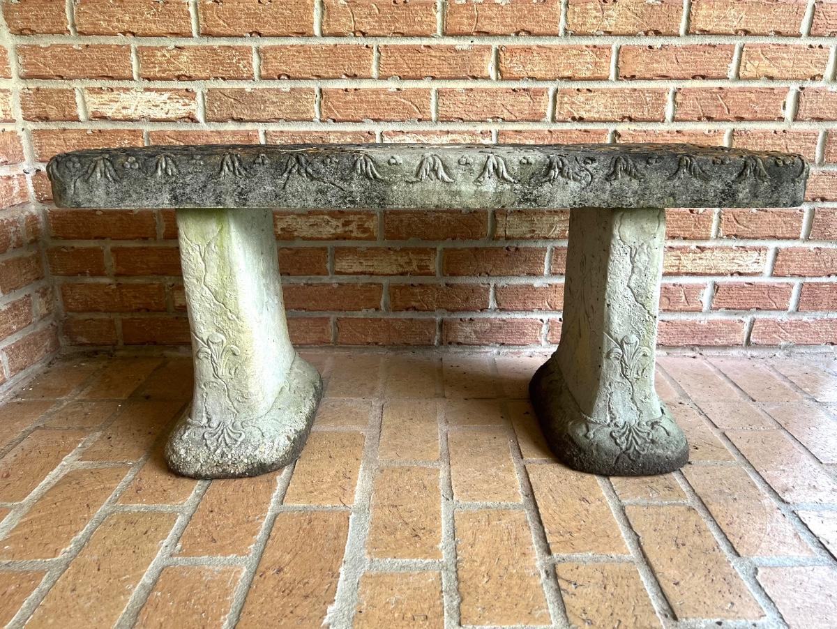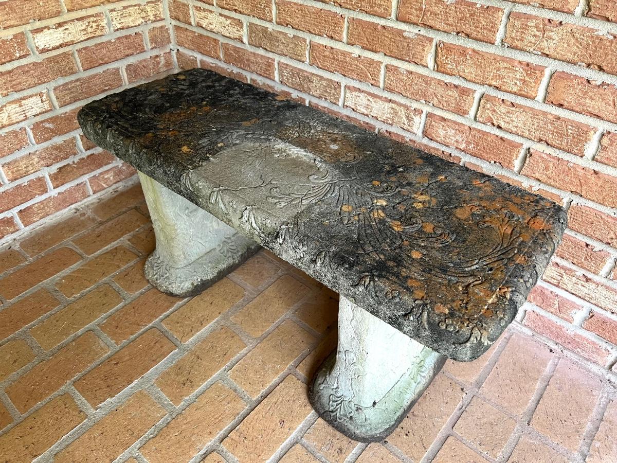 Concrete bench. No cracks or big chunks missing. See pictures as it could use a good pressure washing. Measures 36”W x 14”D x 16.5”T.
