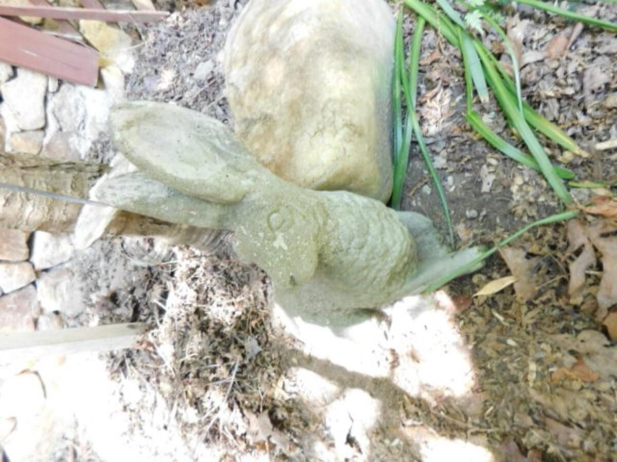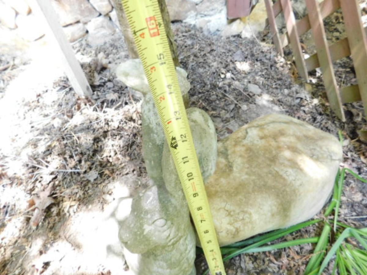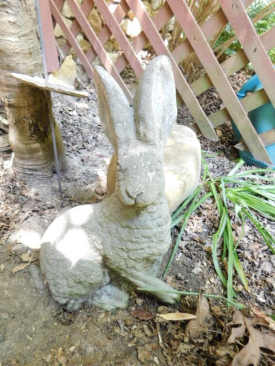 Concrete Bunny Statuette. May need to bring help removing from yard. Expect weathering and color fade.