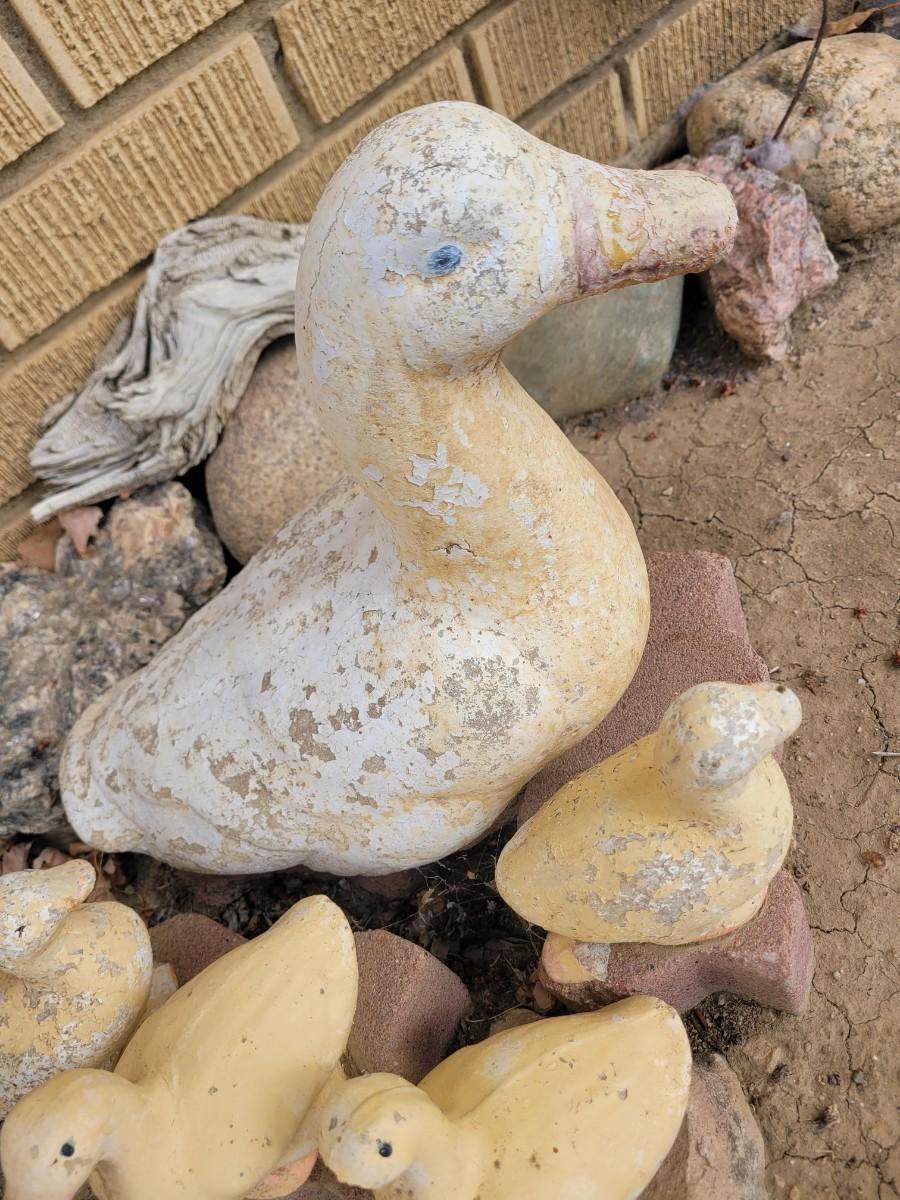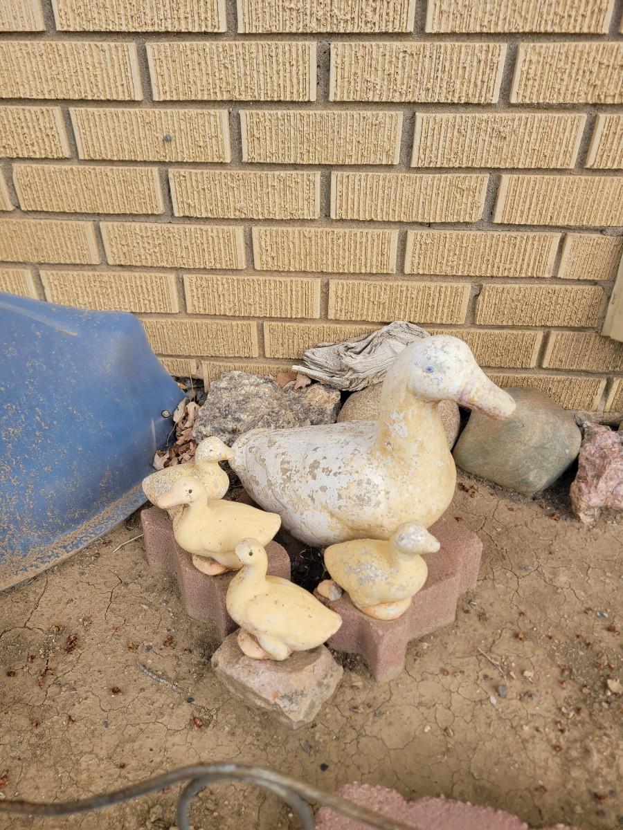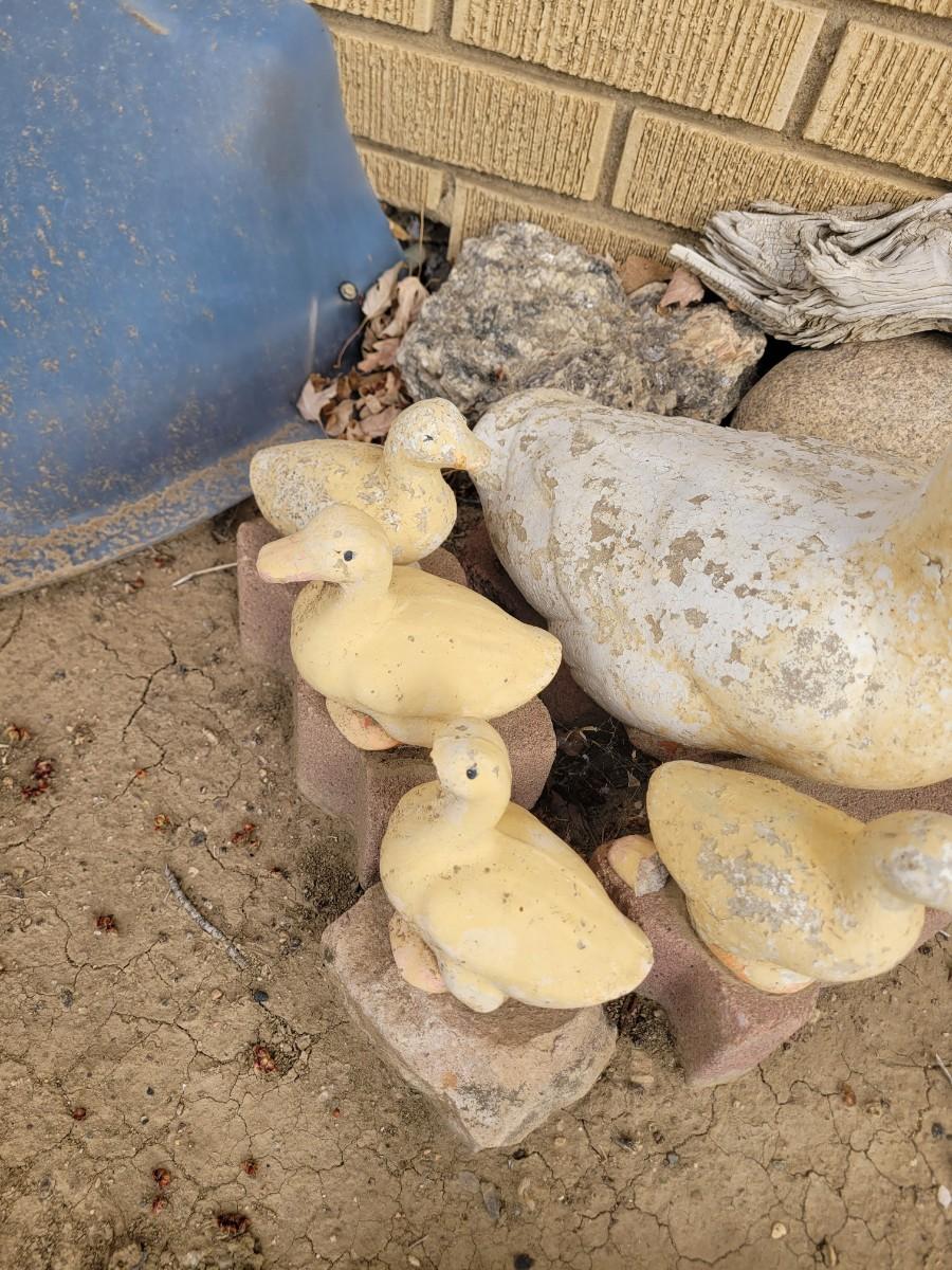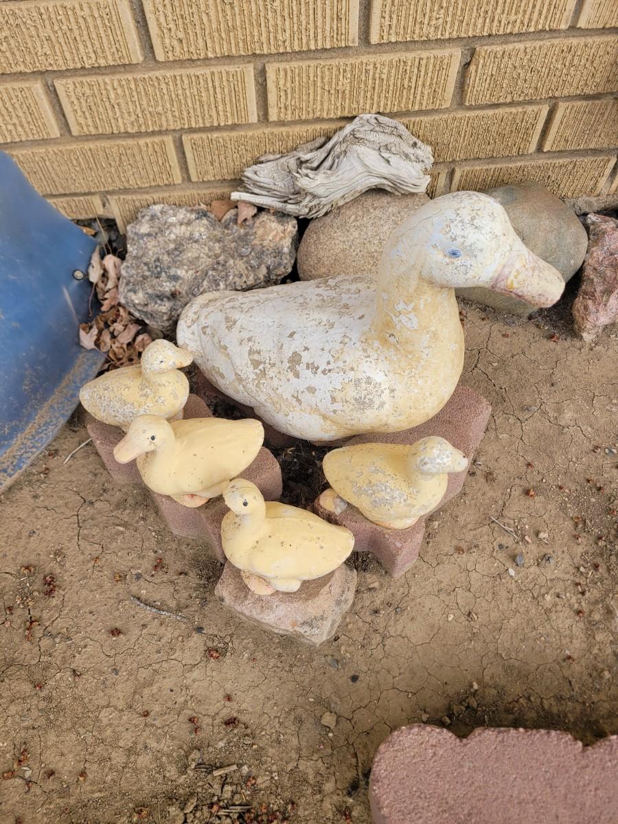 Concrete ducks and 3 babies