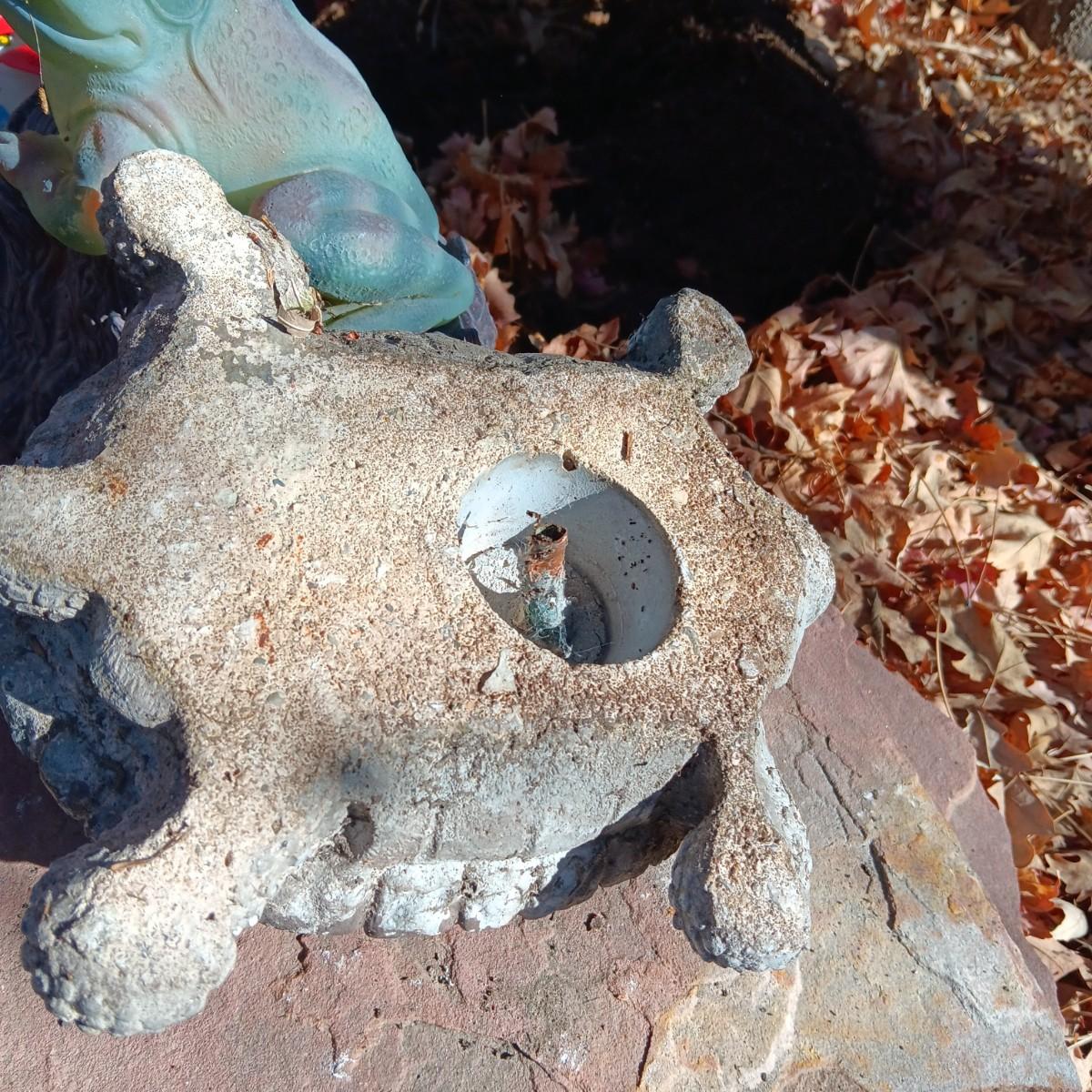 THE TURTLE IS SET UP TO WORK WITH A FOUNTAIN OR USE IN THE GARDEN