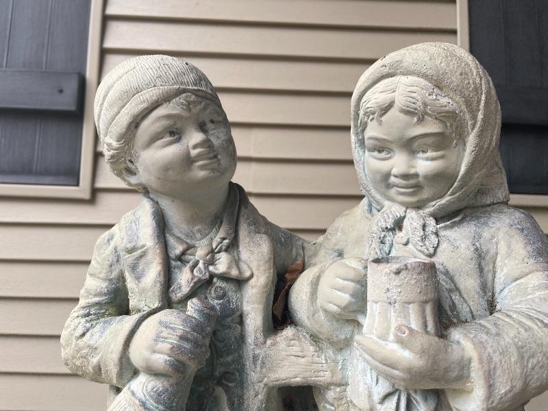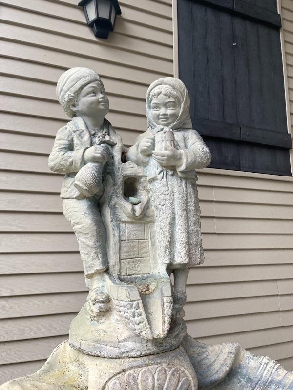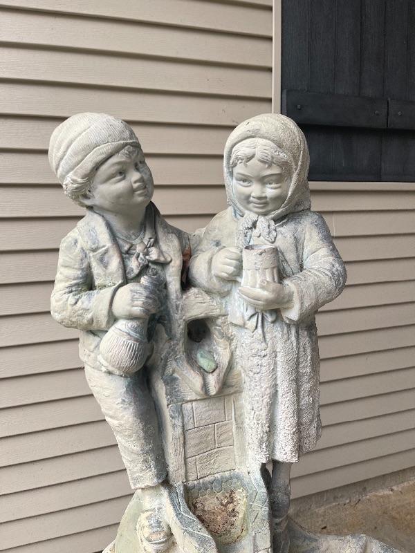 Beautiful children at fountain. Gorgeous muted blue undertones. Perfectly weathered from time.