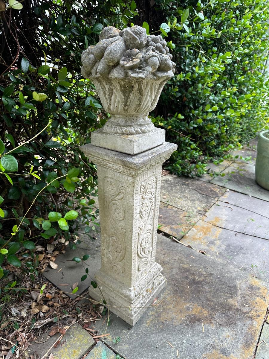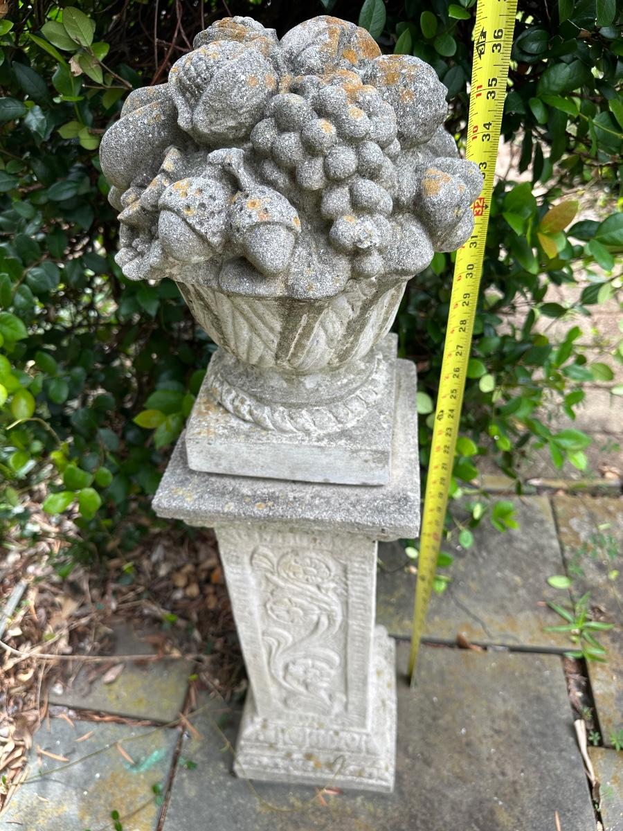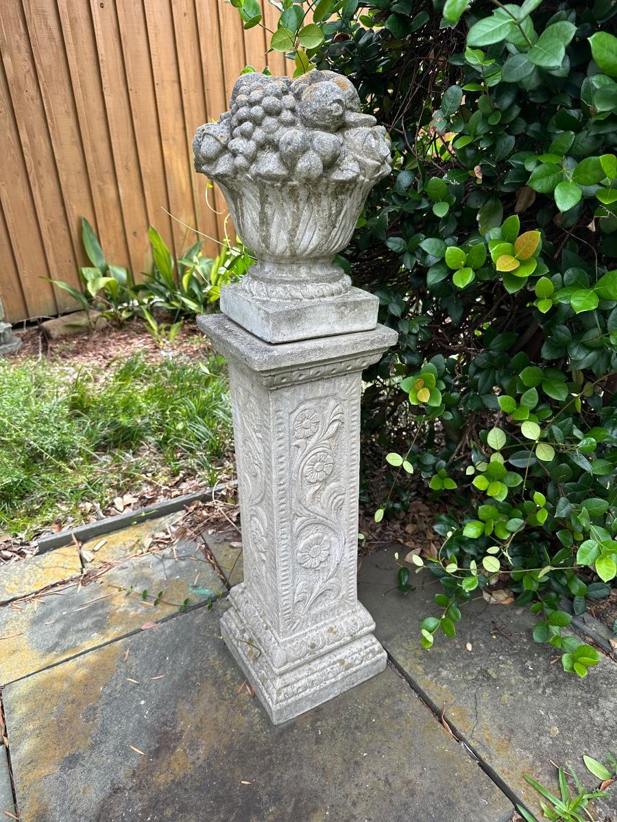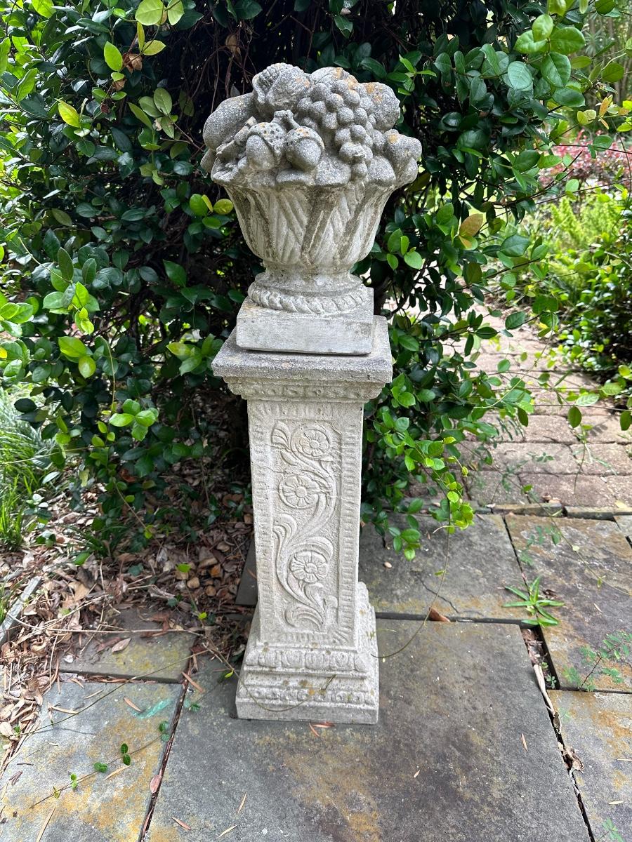 Concrete Garden Pedestal with Decorative Fruit Basket Urn