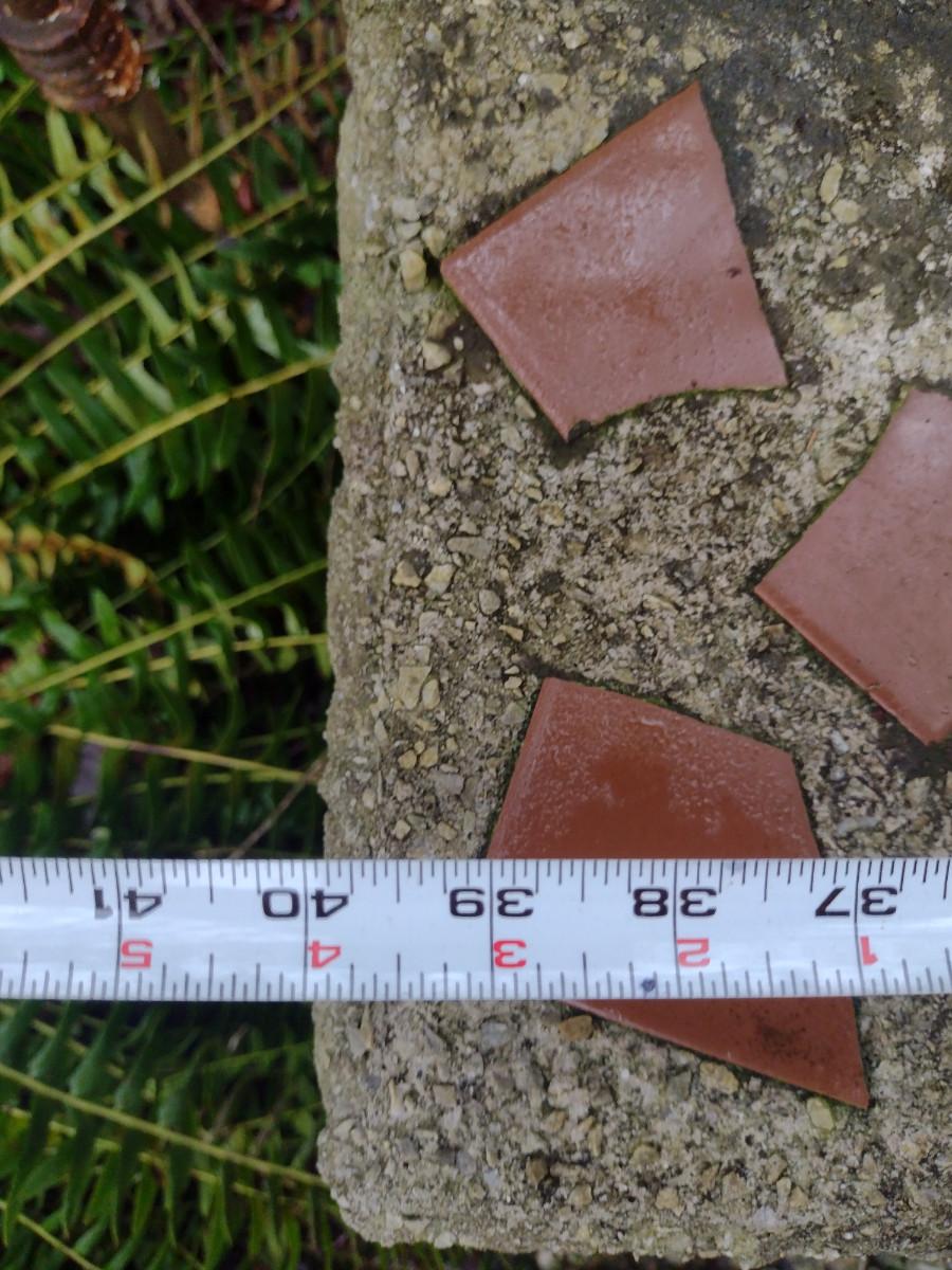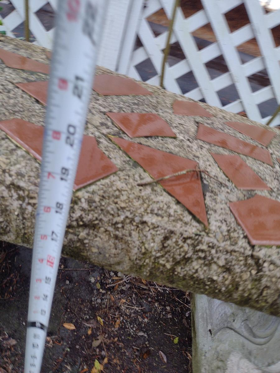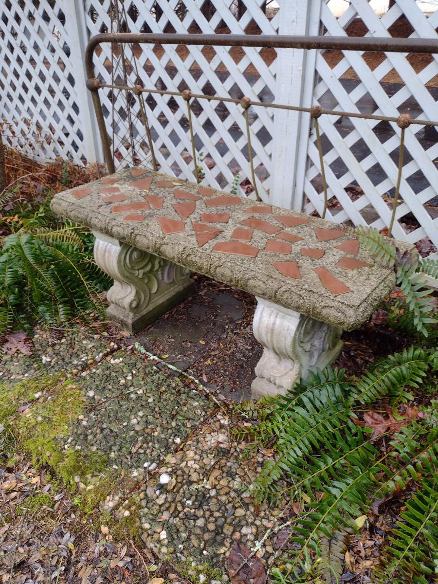 Concrete Garden Sitting Bench with Mosaic Tile Top. Approx 40" long.