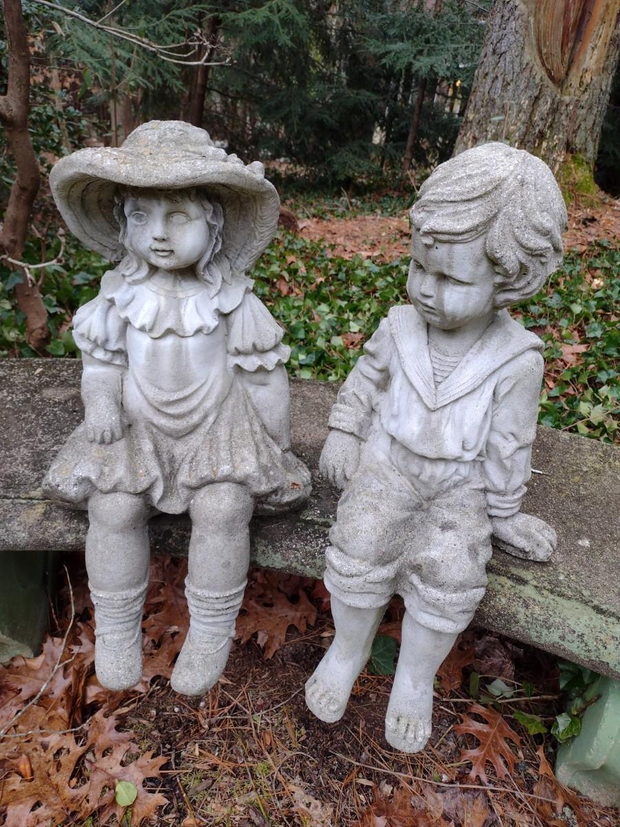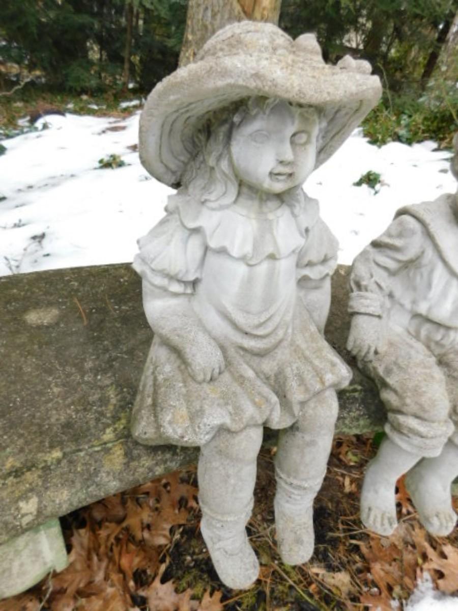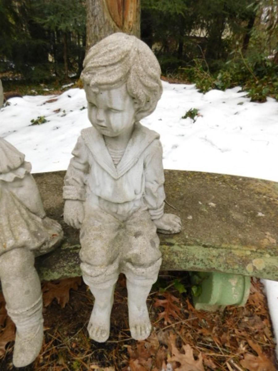 Concrete Little Boy and Girl Statuettes Set Formed in Sitting Position (Bench not included)