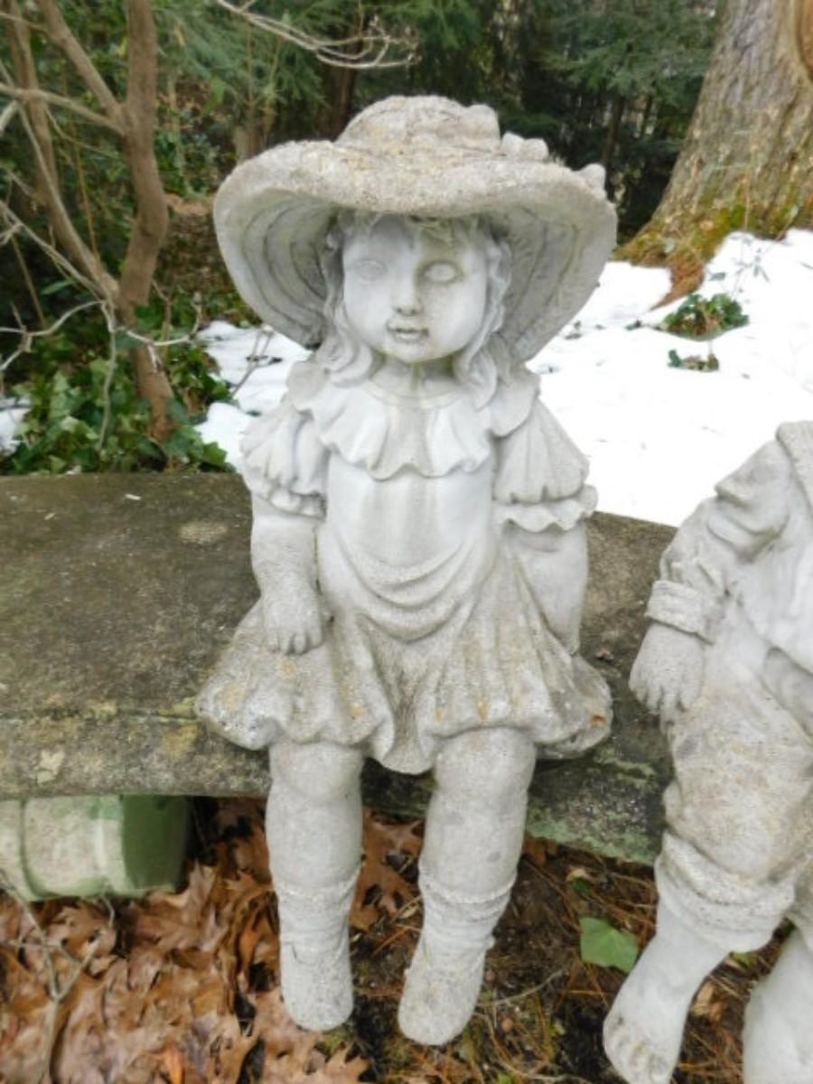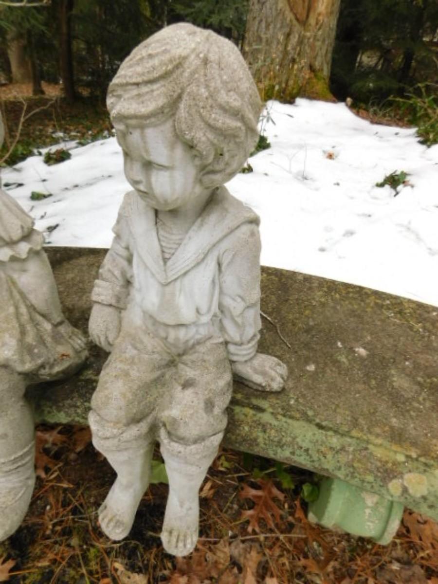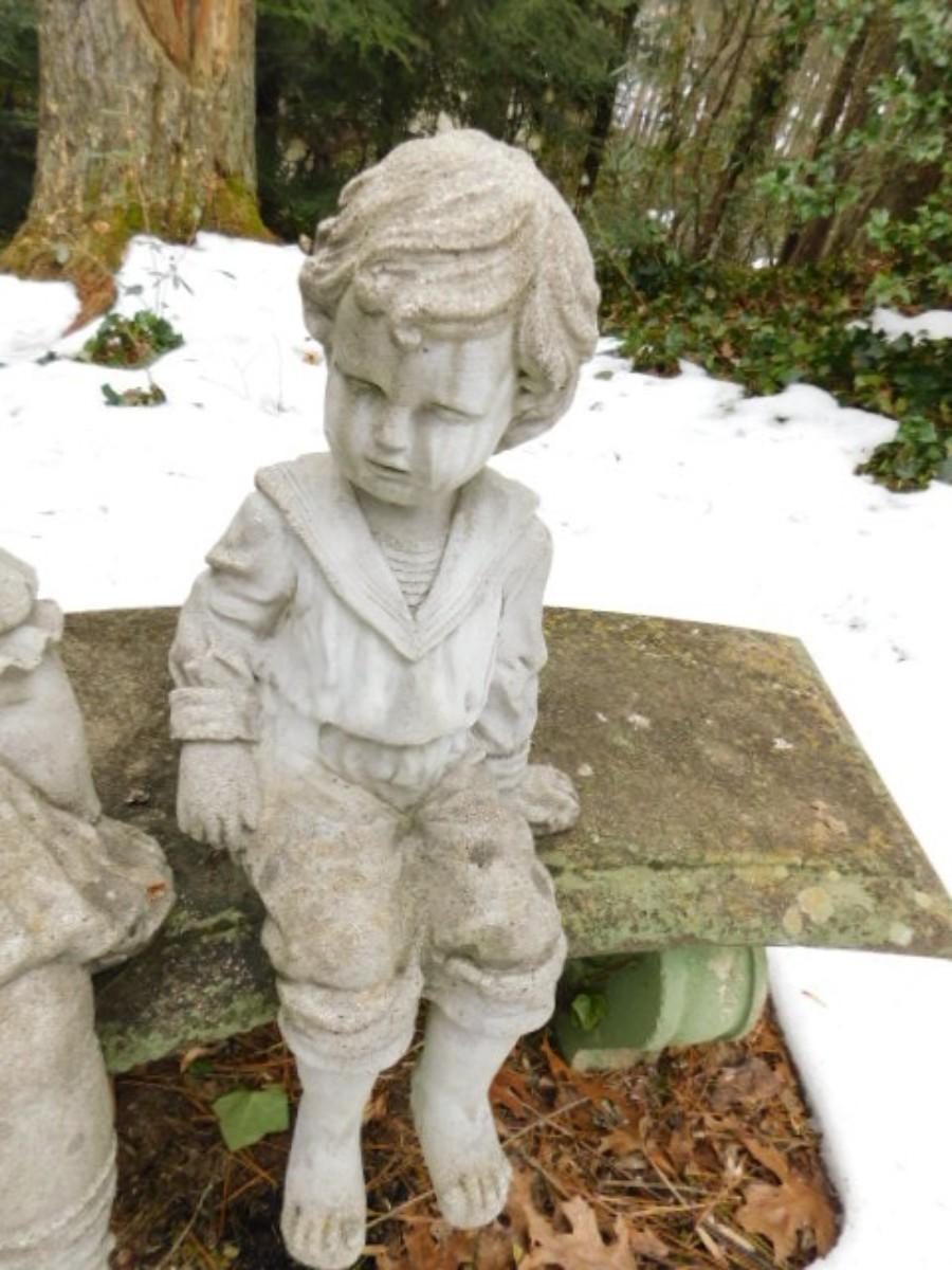 Concrete Little Boy and Girl Statuettes Set Formed in Sitting Position (Bench not included)