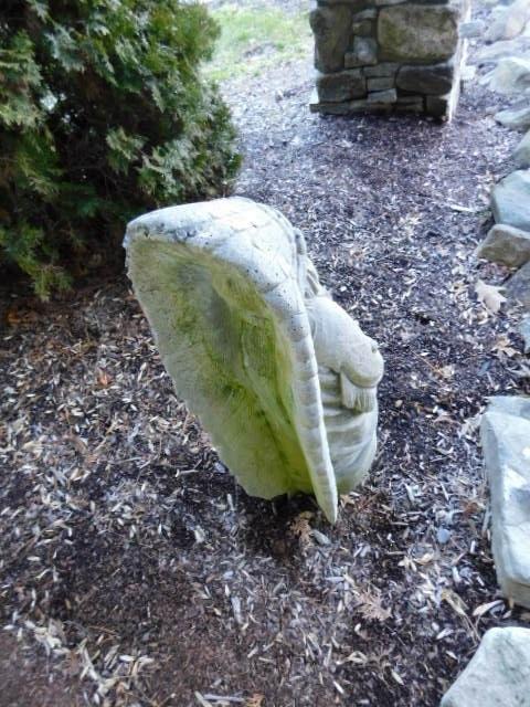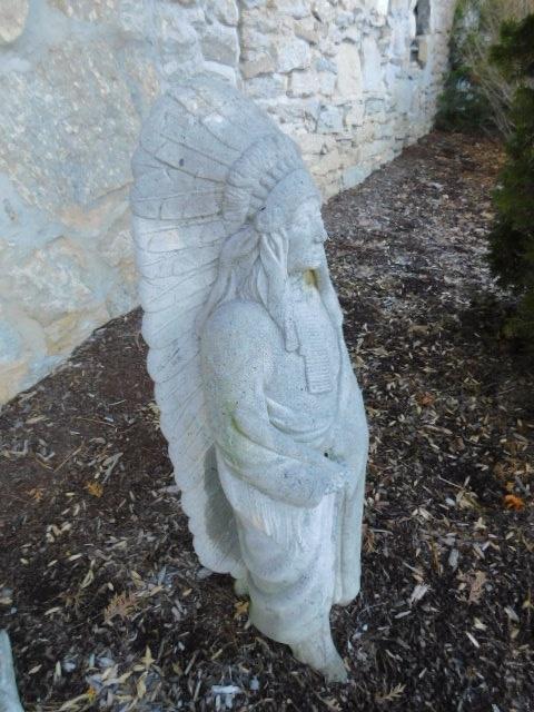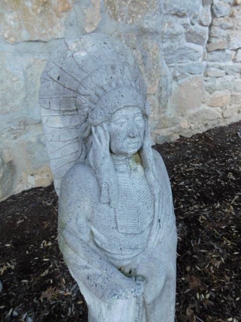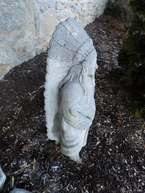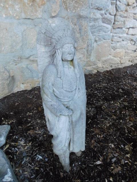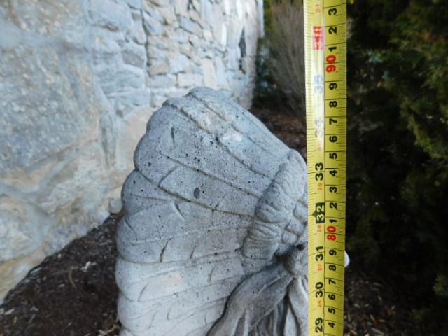 Concrete Native American Chief Natural Mold Finish 36" has some weathering and patina. Intact and solid.