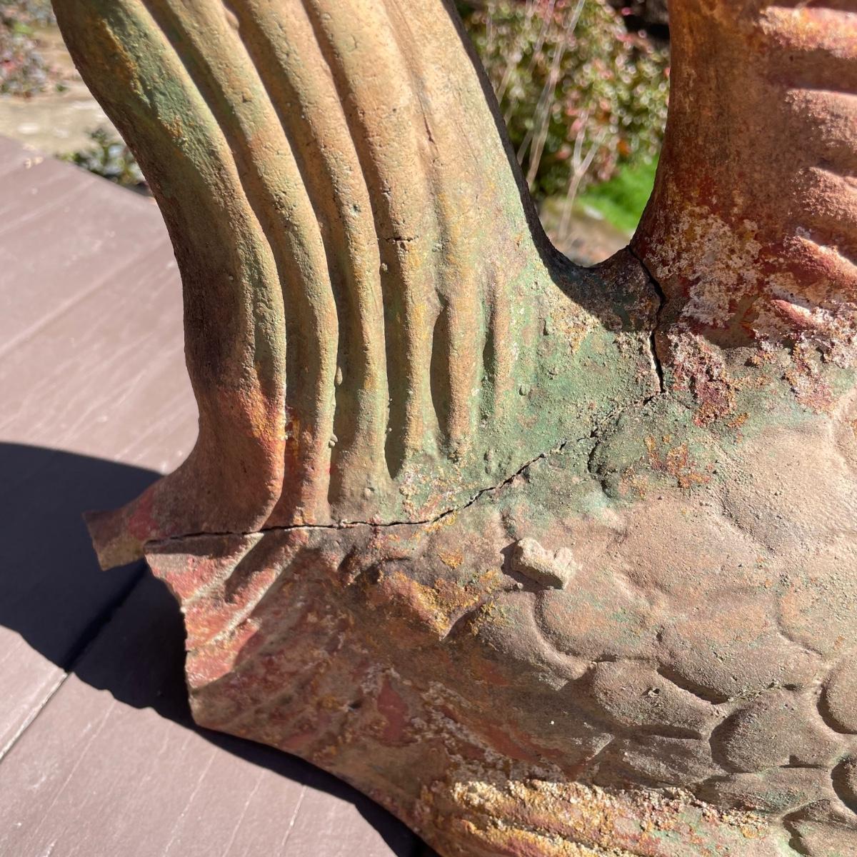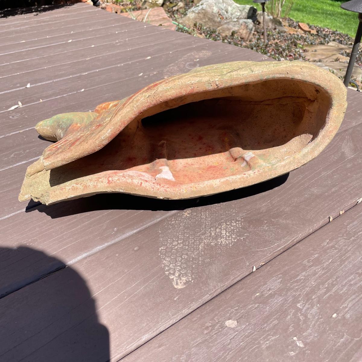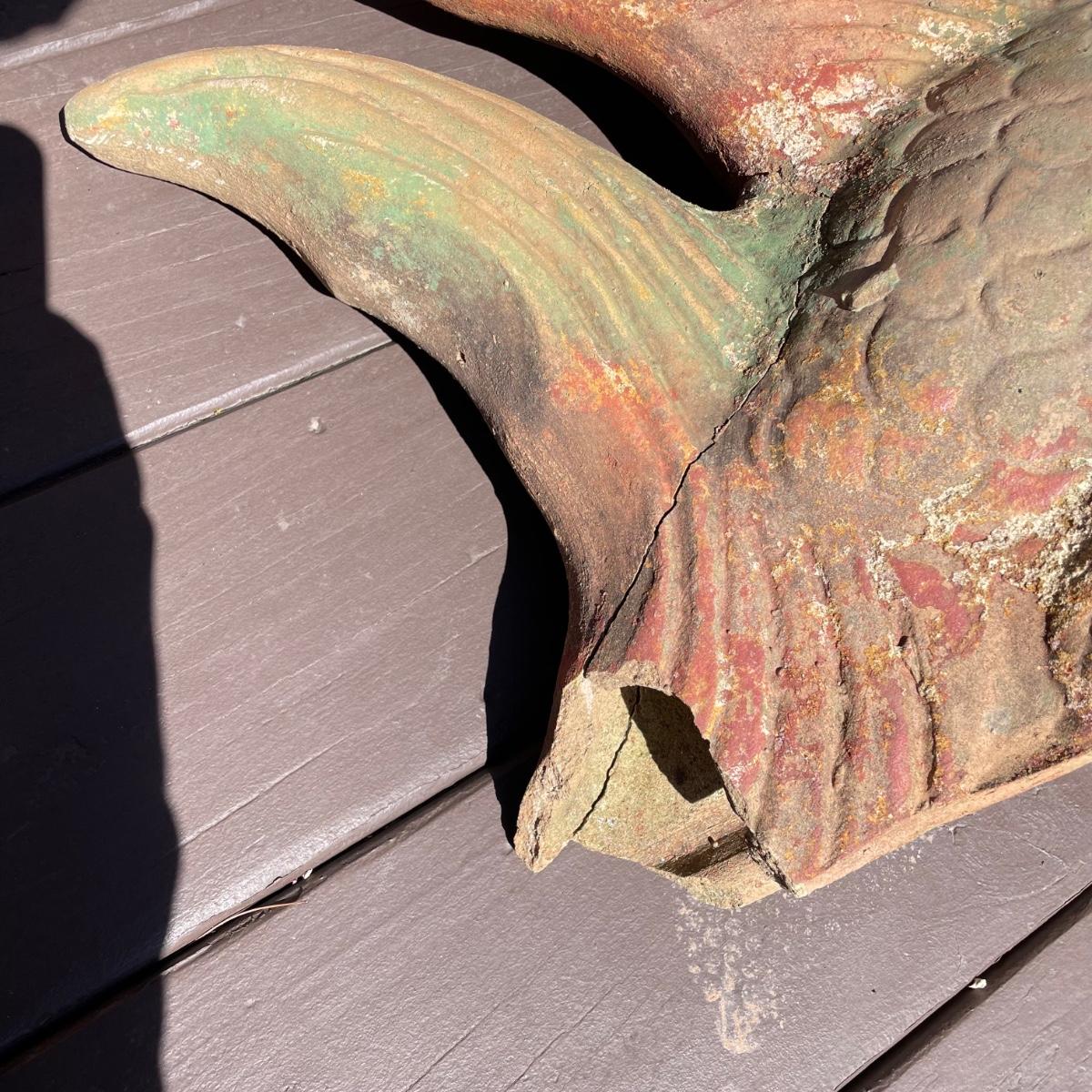 Two oceanic yard statues. A concrete pelican yard statue that measures approximately 10" x 18" x 21"H. The copper colored tropical fish is resin with a concrete texture. It has a significant crack and chip, see photos. Local pickup only. Winning bidder must bring assistance to help move and load the pelican due to its weight and/or size.