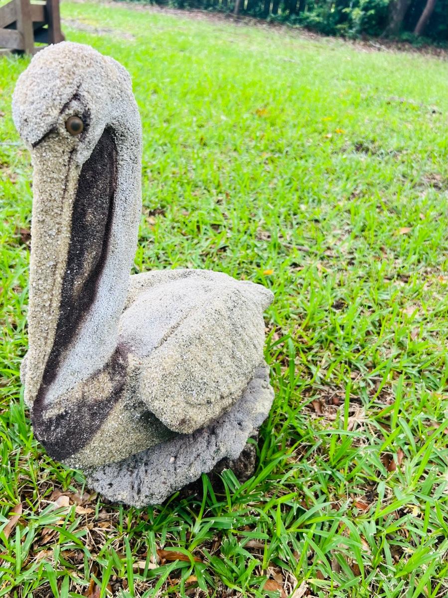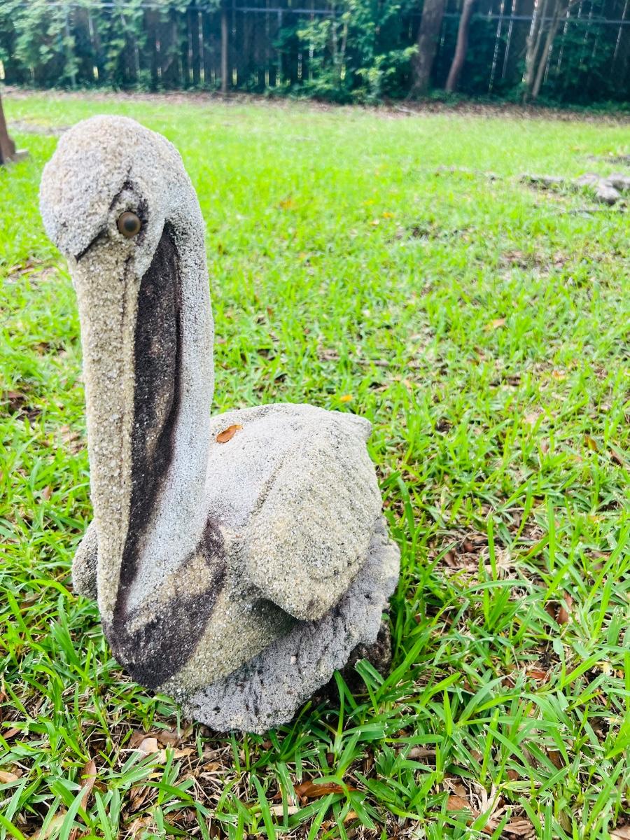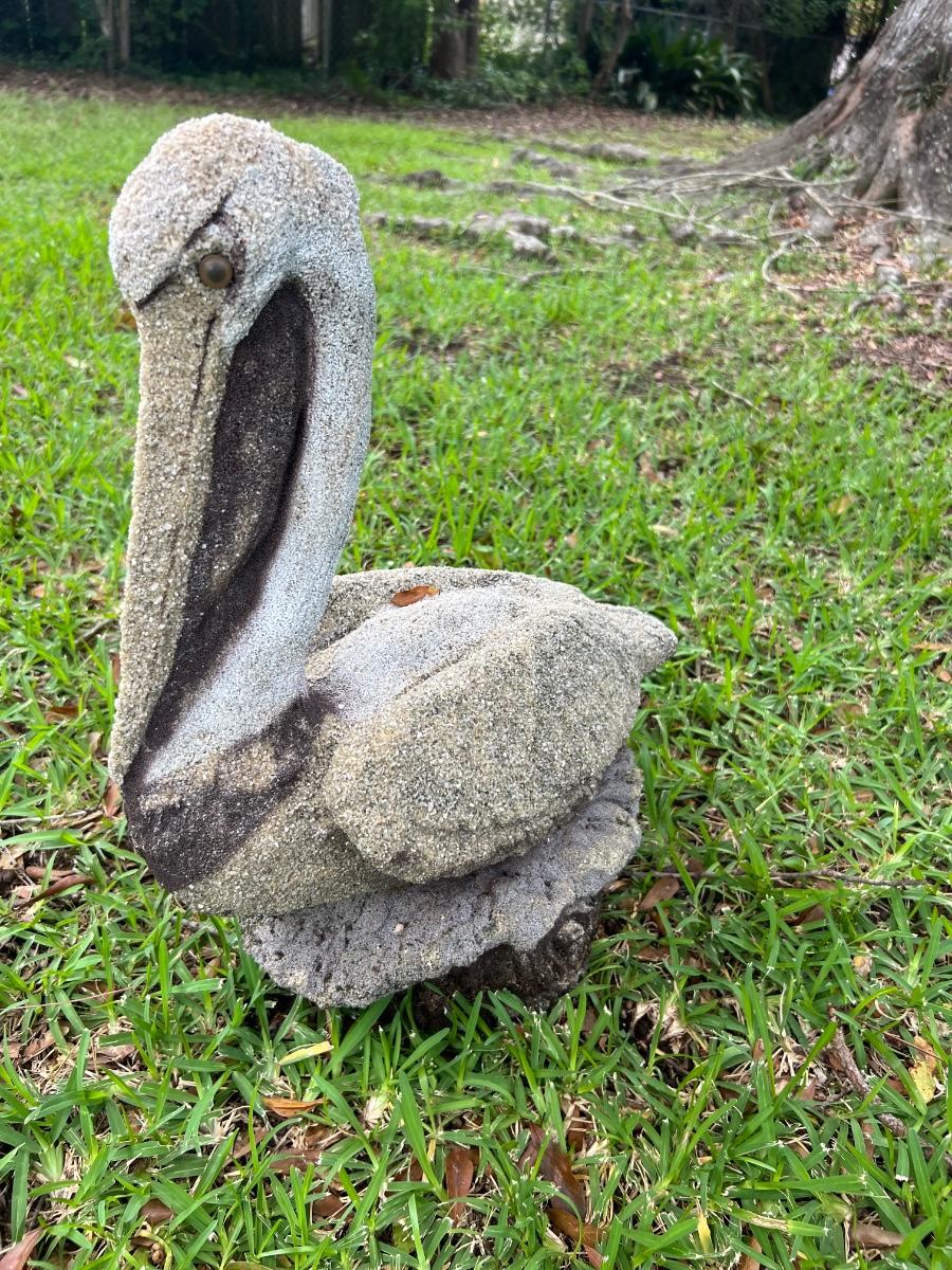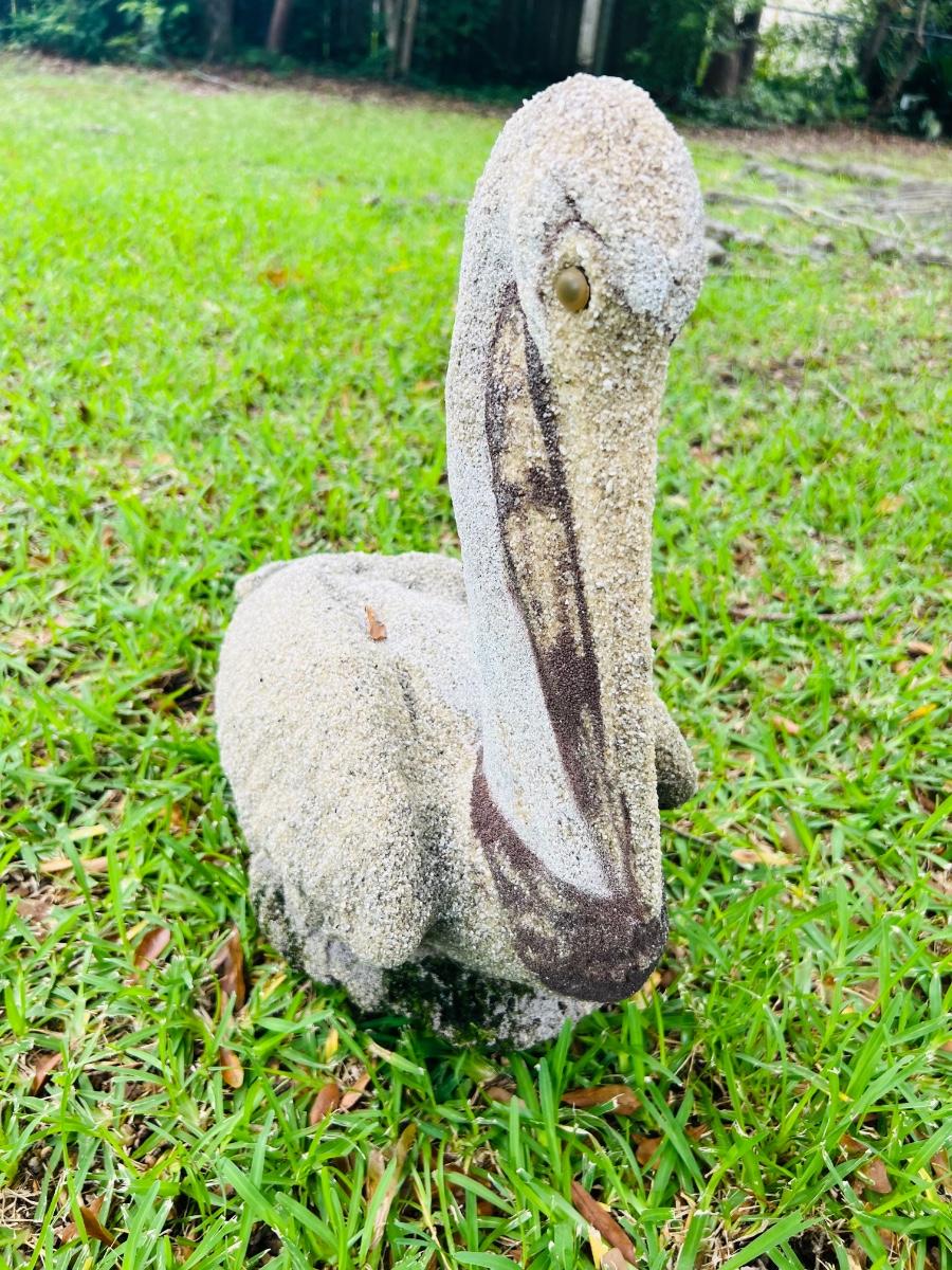 Very heavy, concrete pelican statue that can be painted or left as is. Measures approximately 19 inches tall and 17 1/2 inches long.