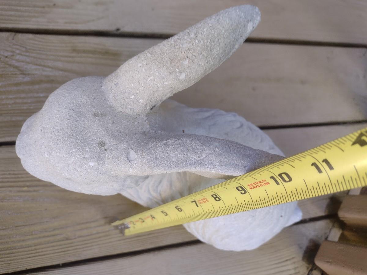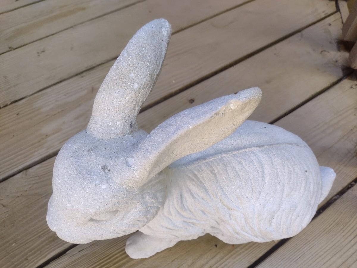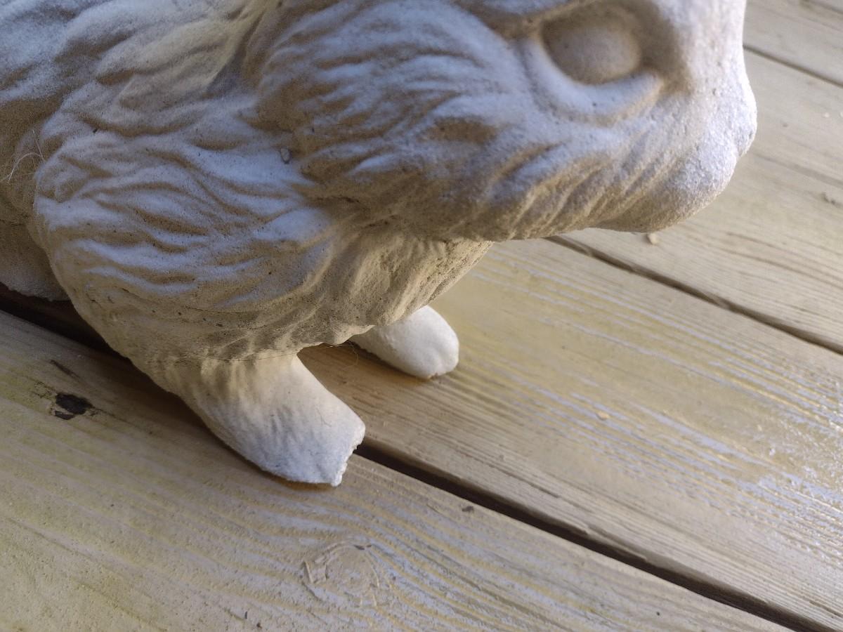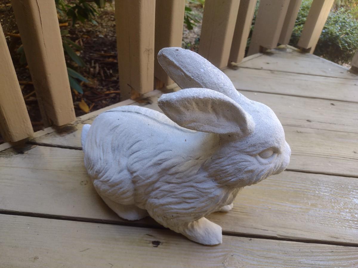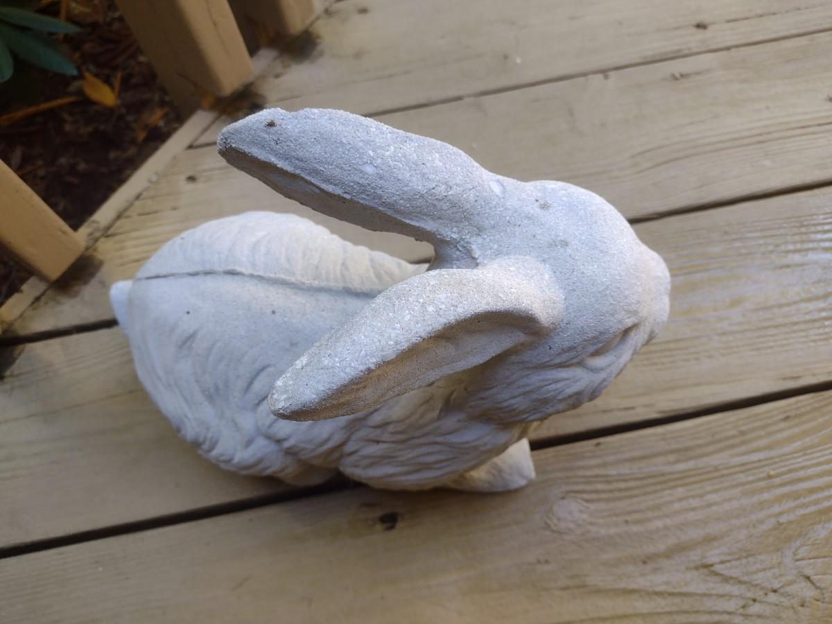 Concrete Rabbit Garden Statuette front paw has a chip as shown