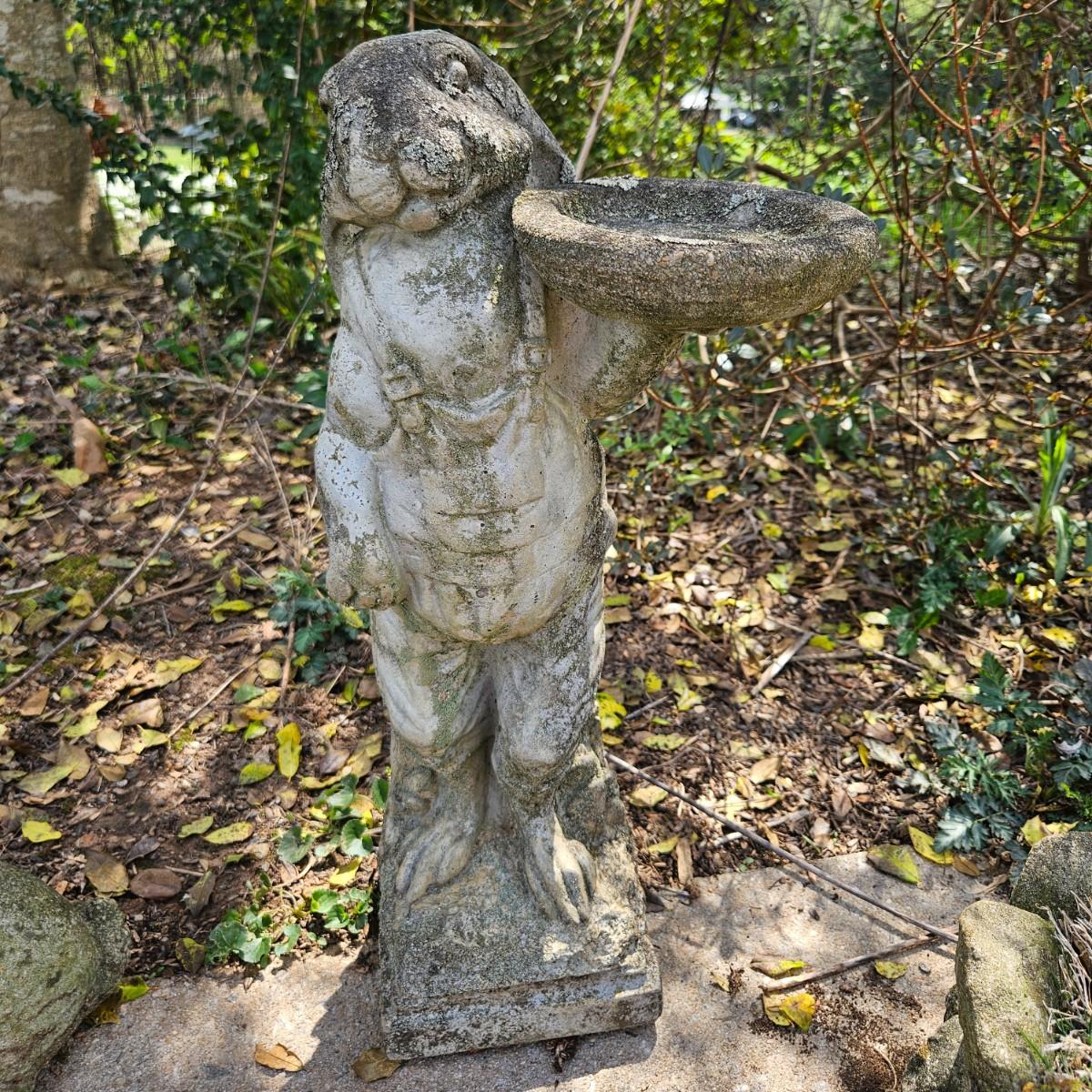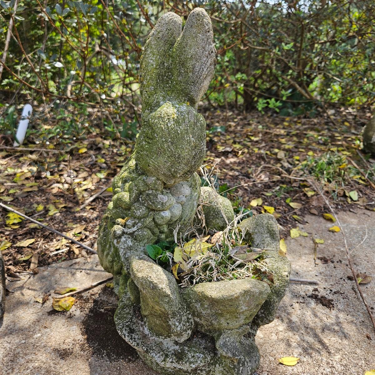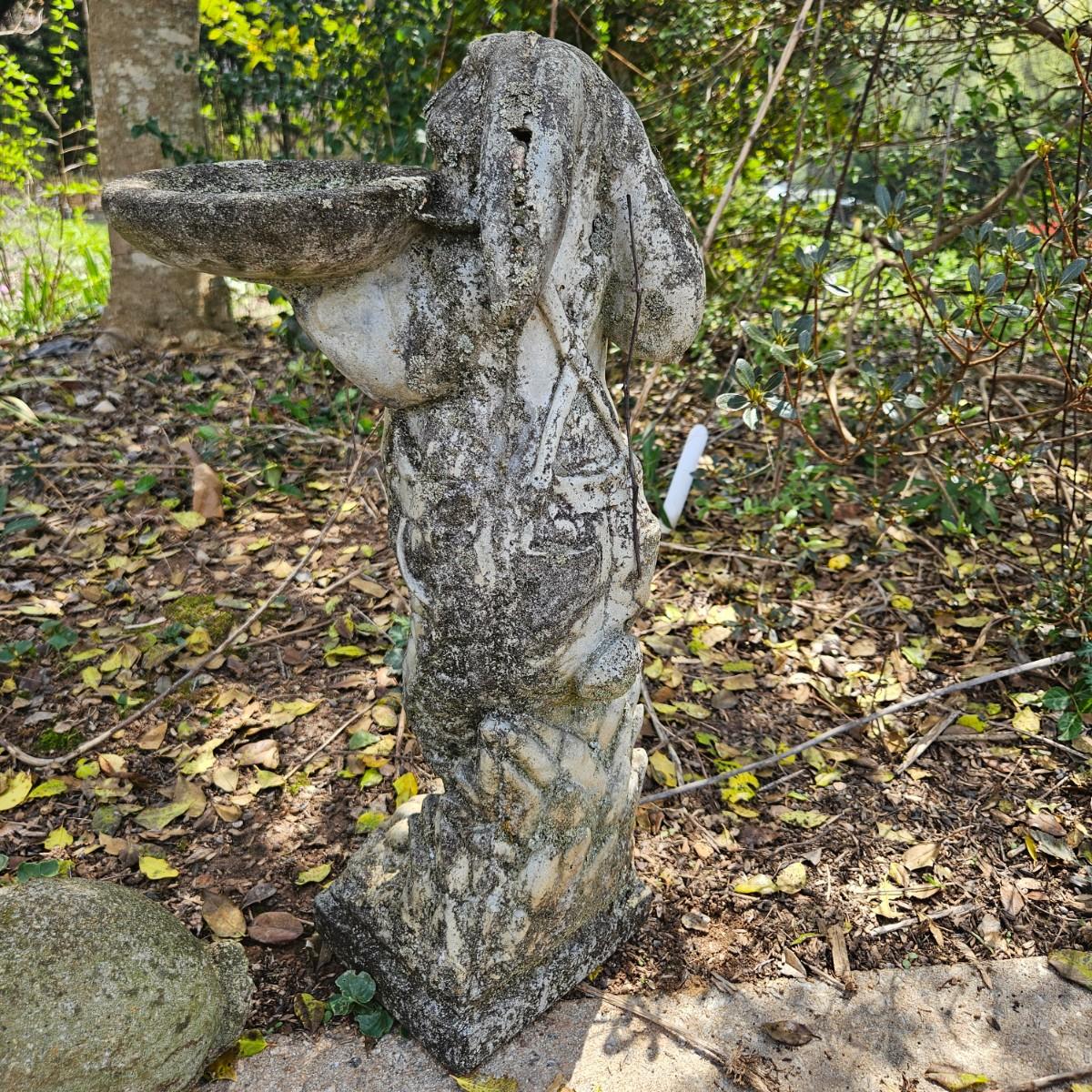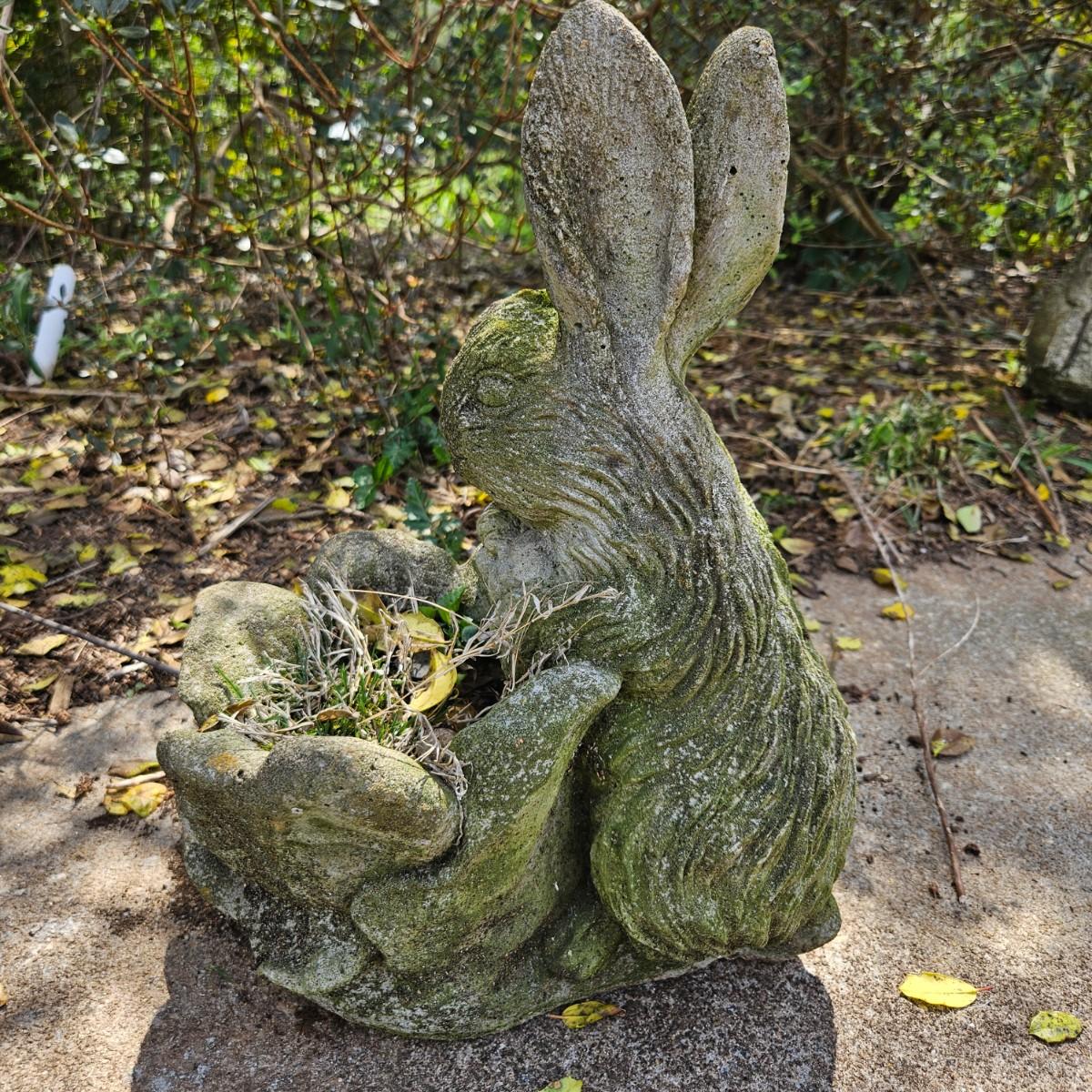 Four pieces of concrete yard art that are all rabbits. The largest piece measures approximately 10" x 6" x 22"H. Some pieces are damaged from years of being outside, see attached pictures for more detail. Local pickup only
