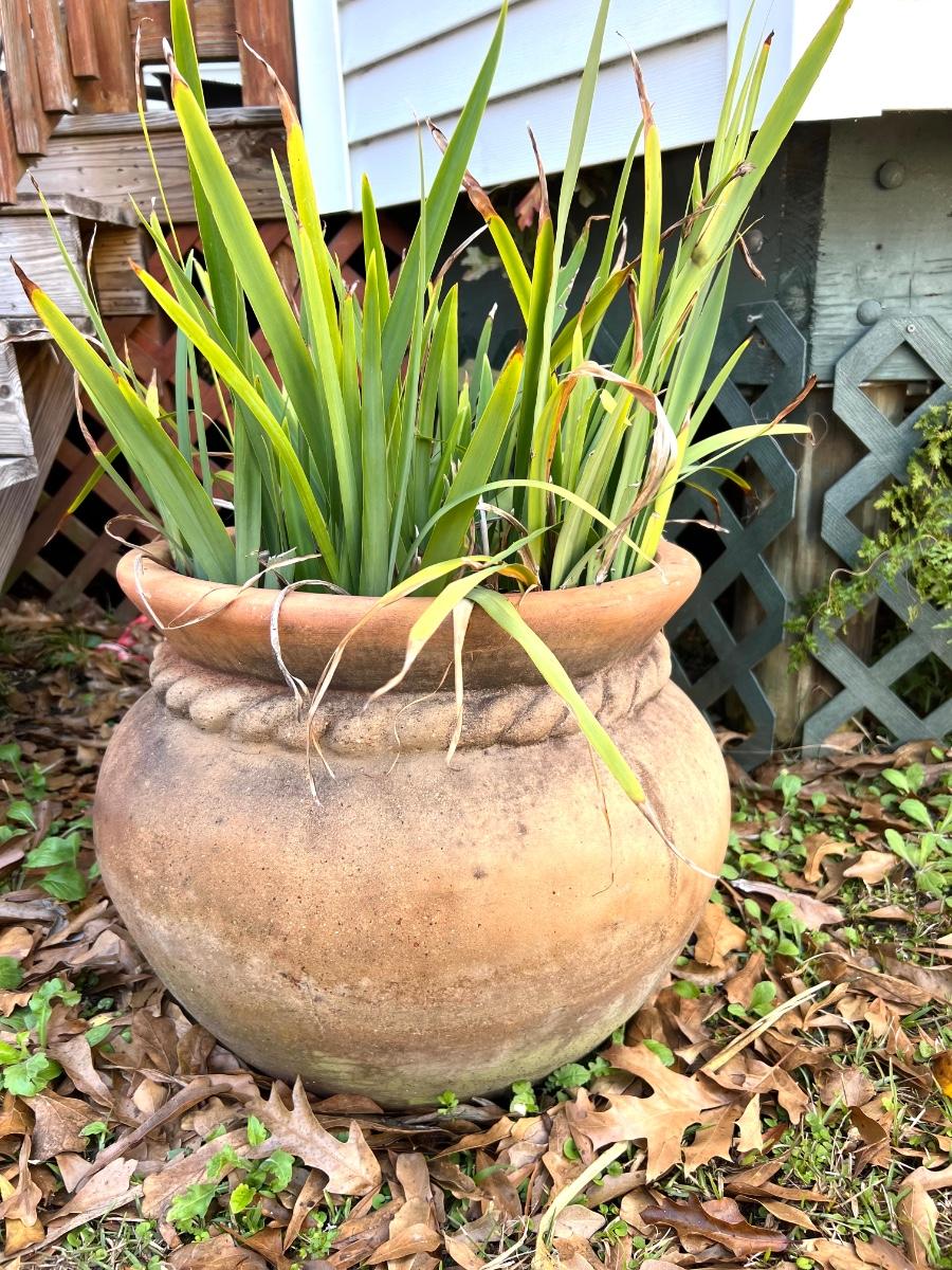 Concrete Rope Planter measures 15 inches tall and 17 inches wide. Plant measures from ground to tallest point at 26 inches tall.