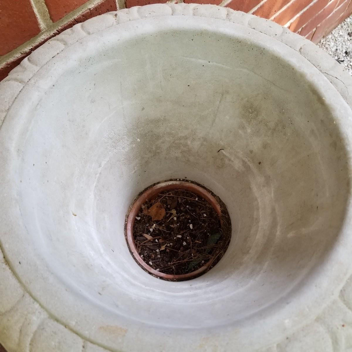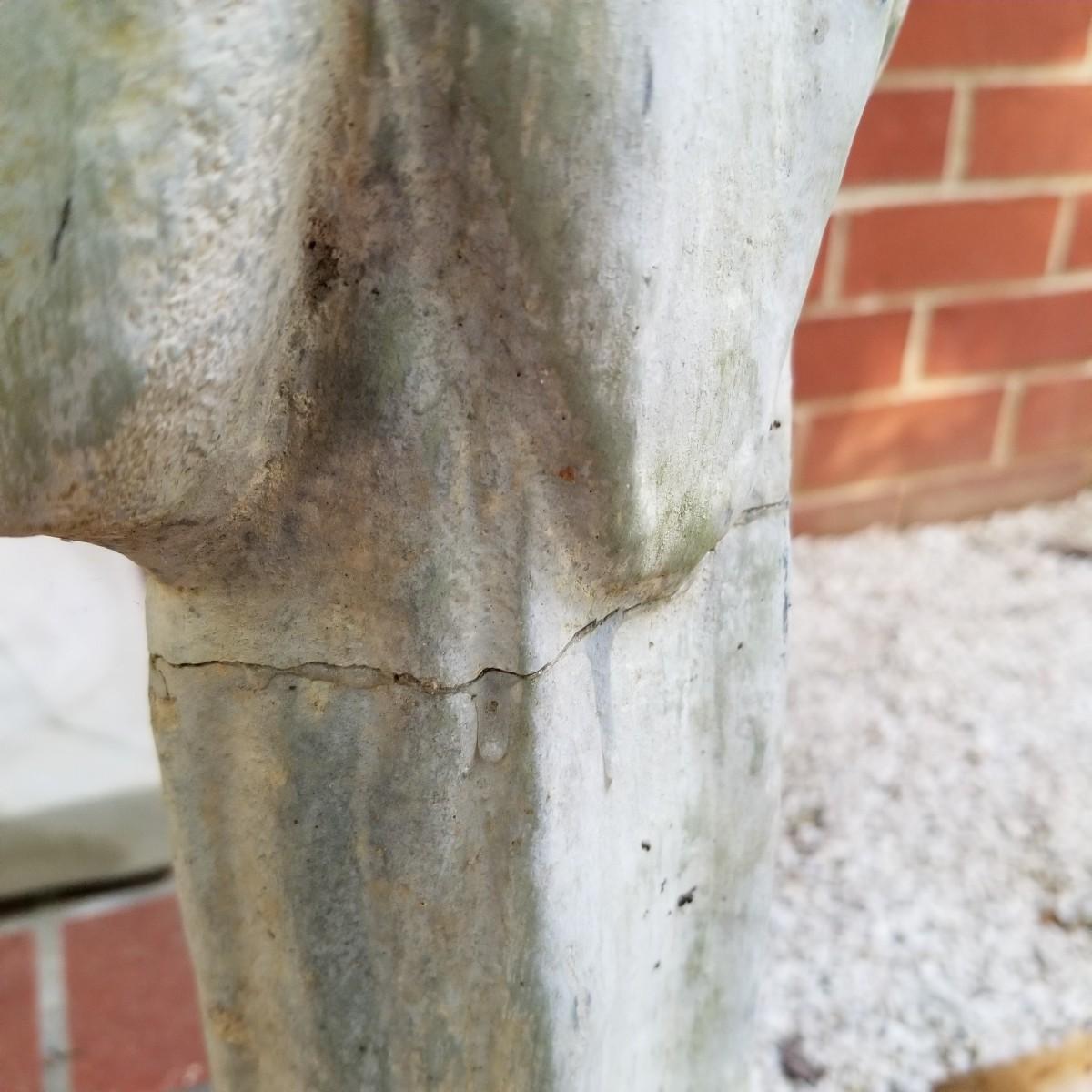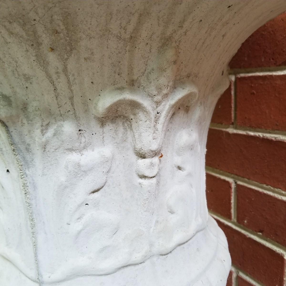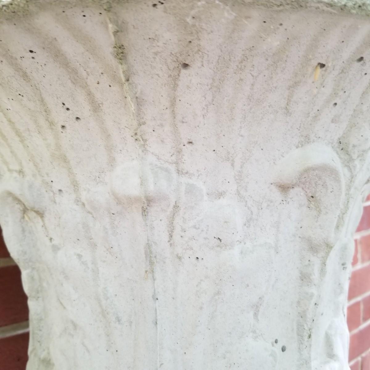 Outdoor display pieces, one small statue and one urn planter. The statue is 19" tall, a saint holding a bird. The saint has two breakage points, one in the middle and the head. The urn is 17"dx25" h, has patterned design molded in. See photos for detail. Very heavy; the winning bidder will need to bring help to move.  Local pickup only.