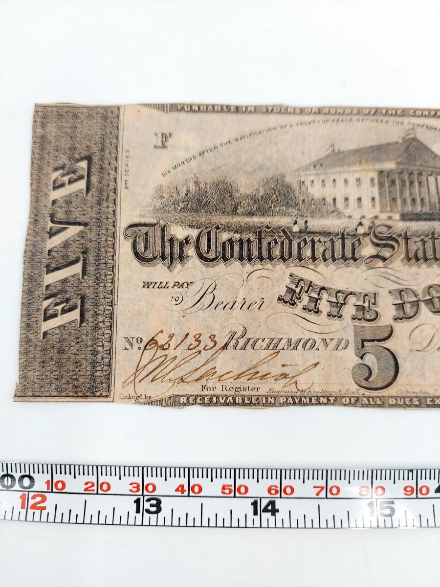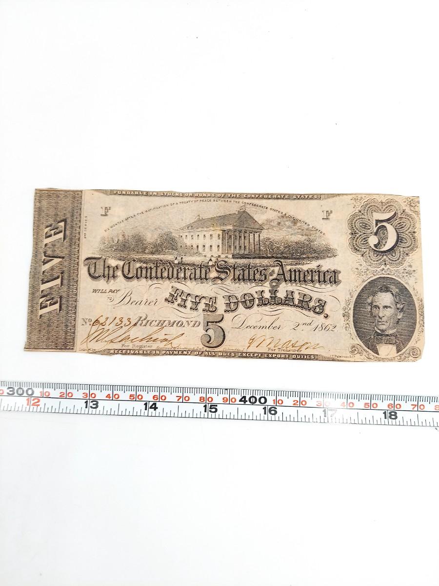 CONFEDERATE MONEY - $5 - RICHMOND VA - 1862
