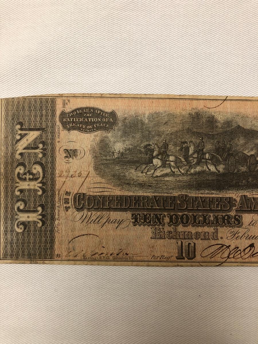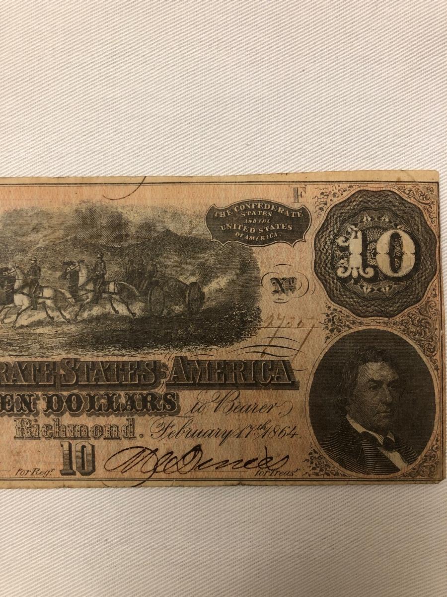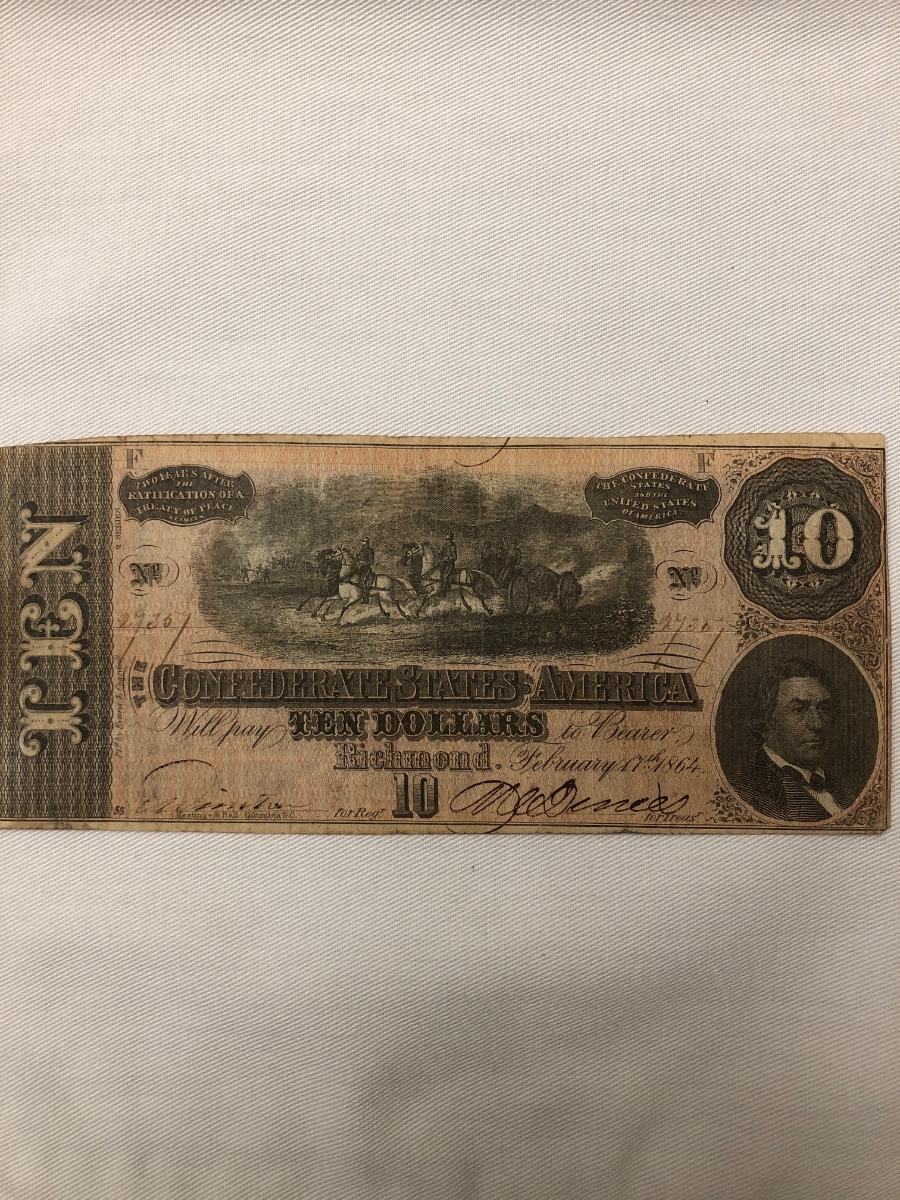 In very good condition. Two ink signatures. Hand numbered twice, #2435. Issued February 17, 1864. Civil War era.