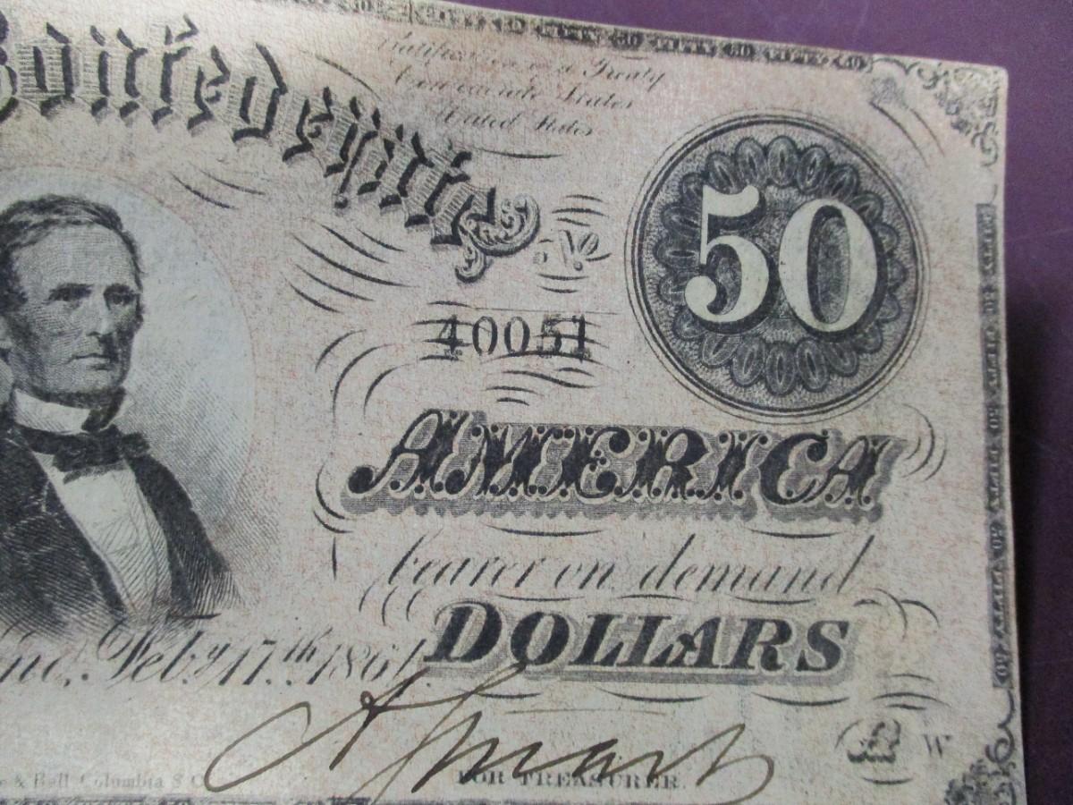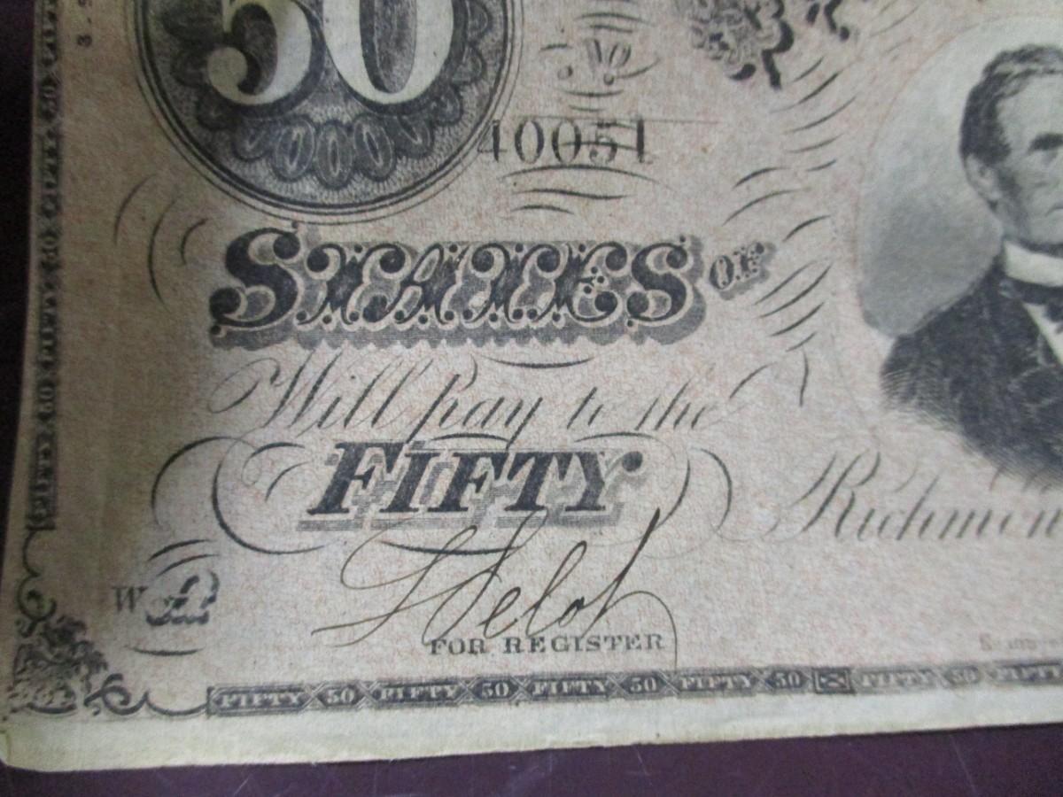 Confederate States Of America Fifty Dollars Richmond 1860's