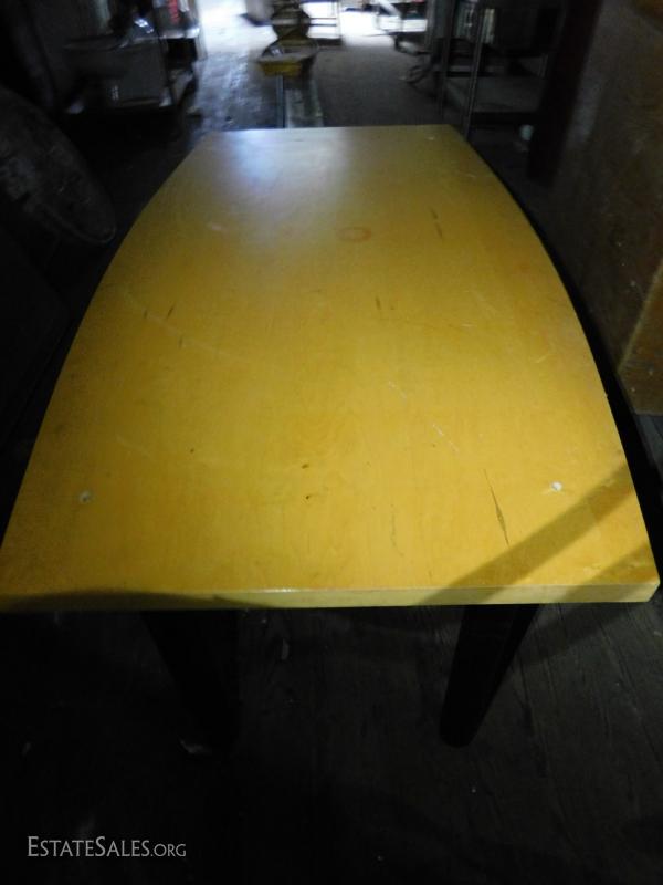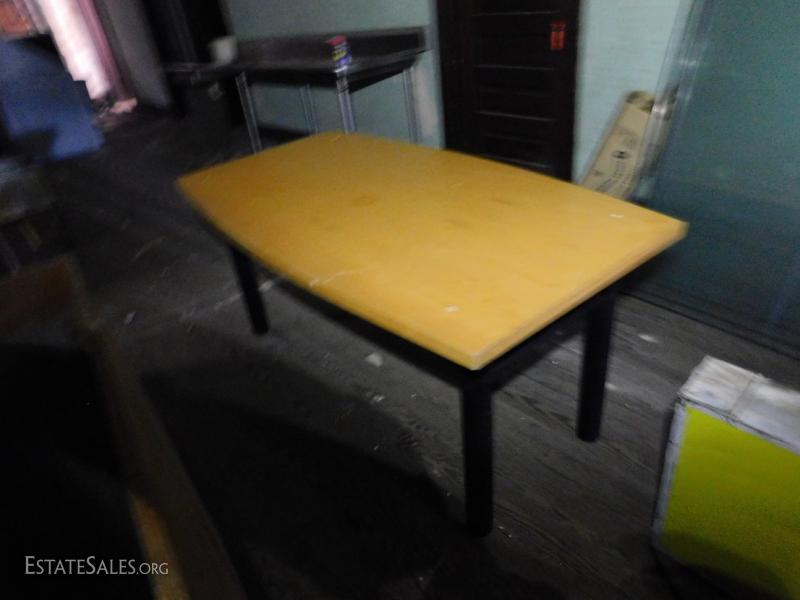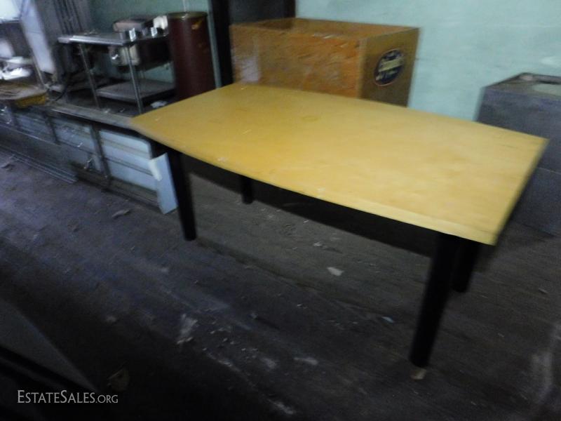 Conference or Work Table. Metal base with Oak Top. Some scratches to surface but should clean up fine.