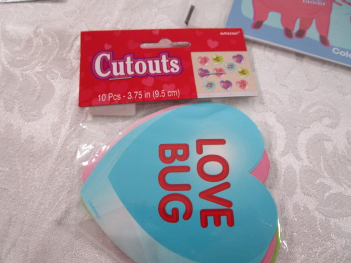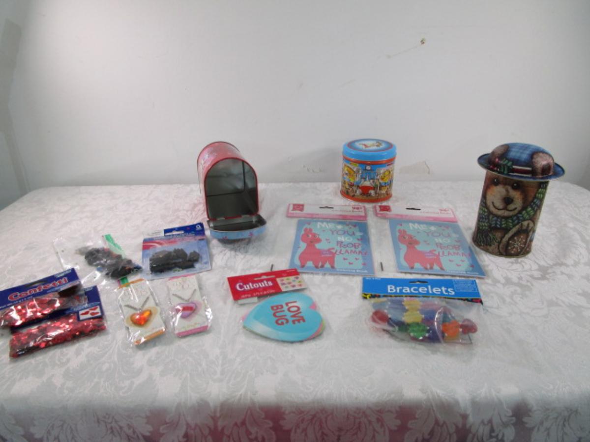 Confetti, Valentine mail box, 2 canisters, coloring books, etc.