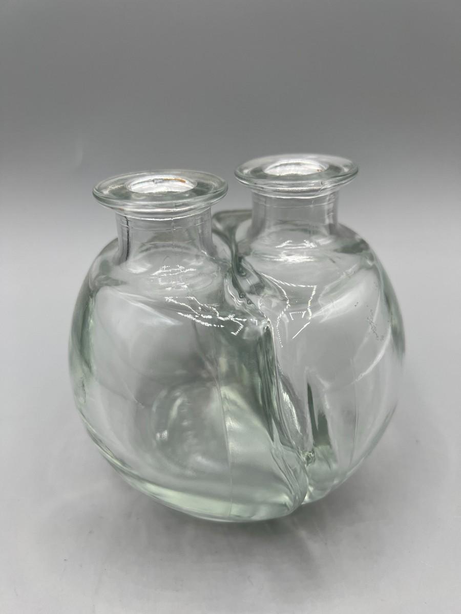 Conjoined Double Glass Bottle Jars, there are no significant cracks or chips to either of the bottles and is in good useable condition. Check pictures for more details and for sizing.