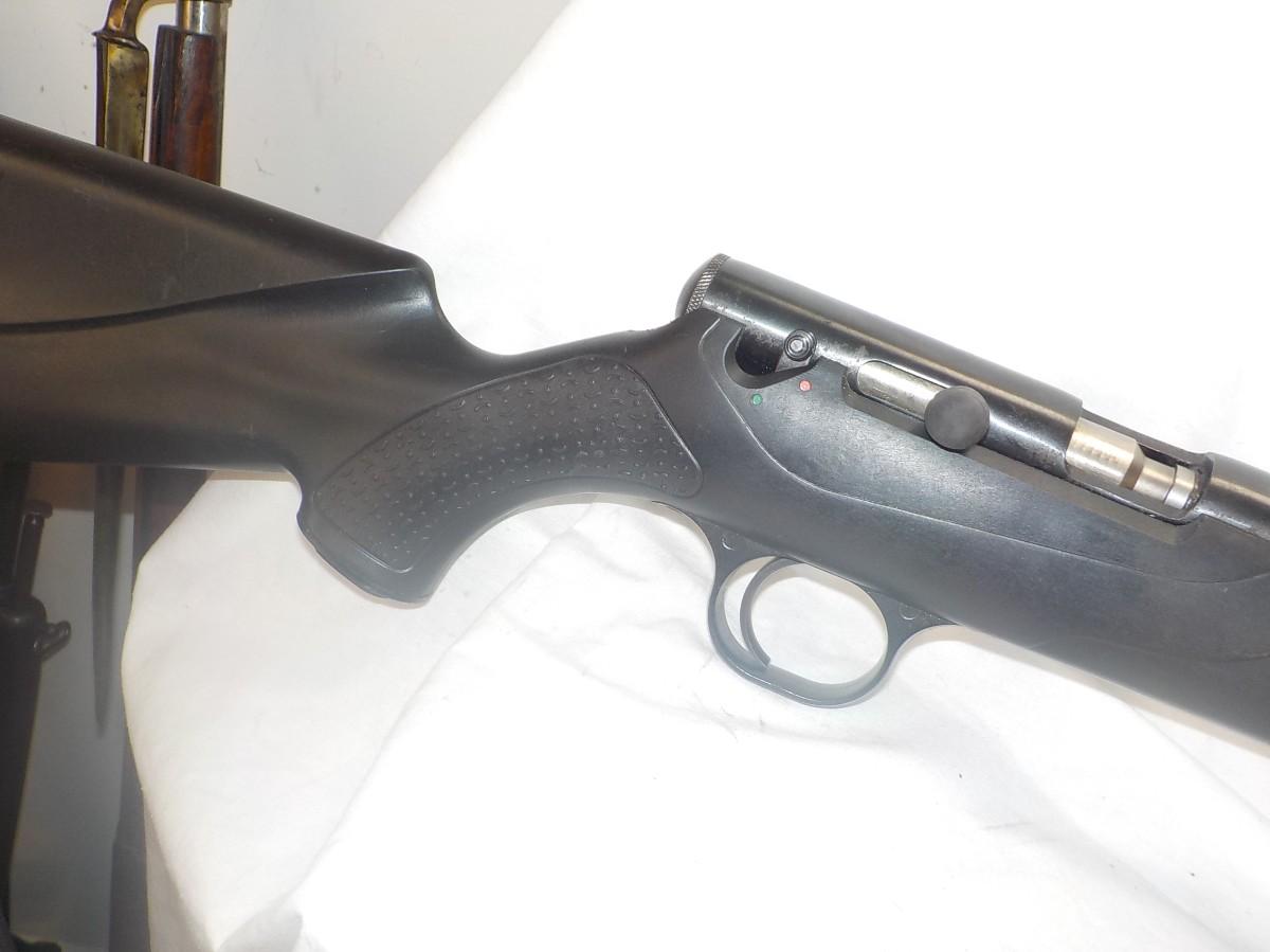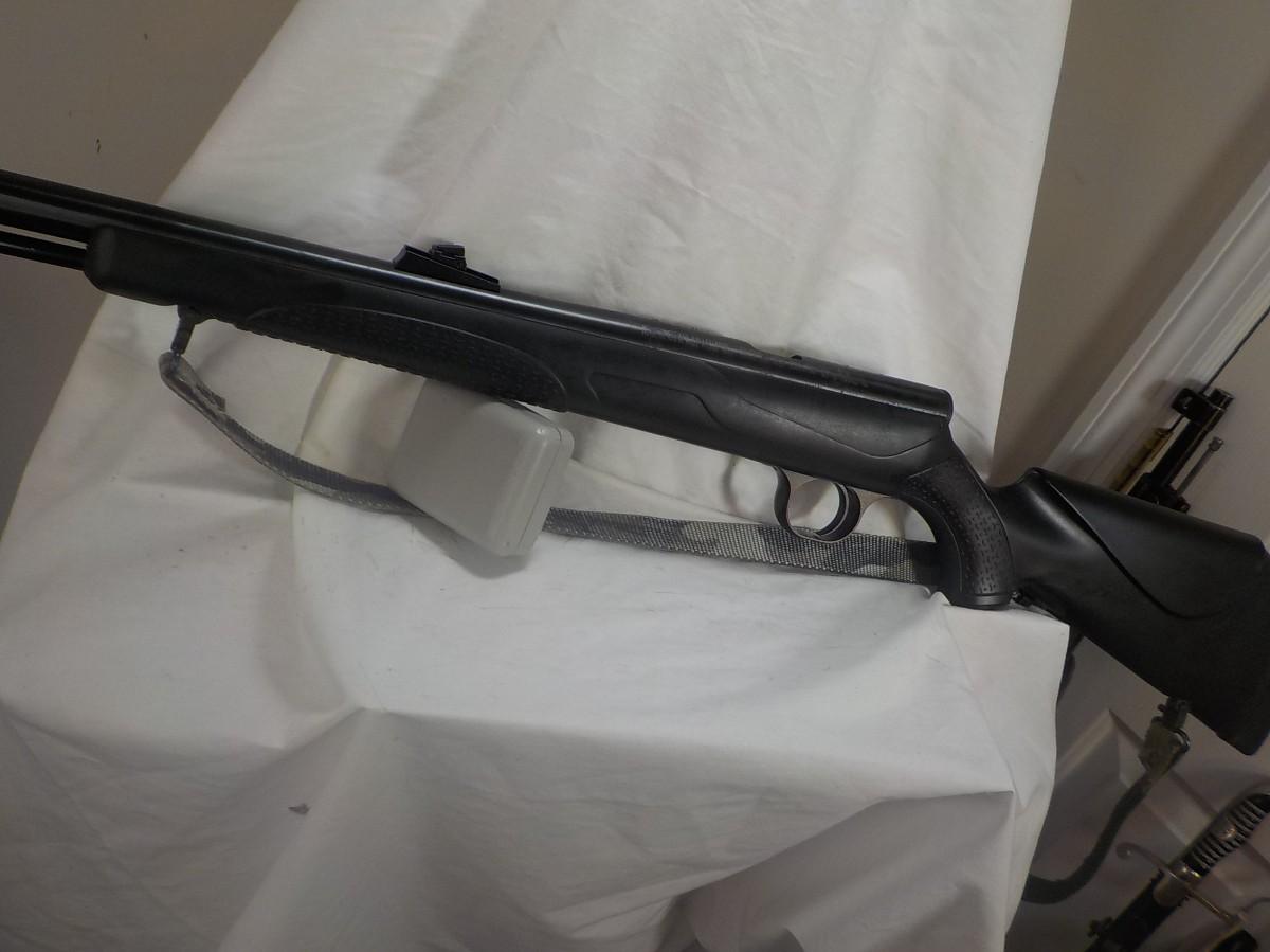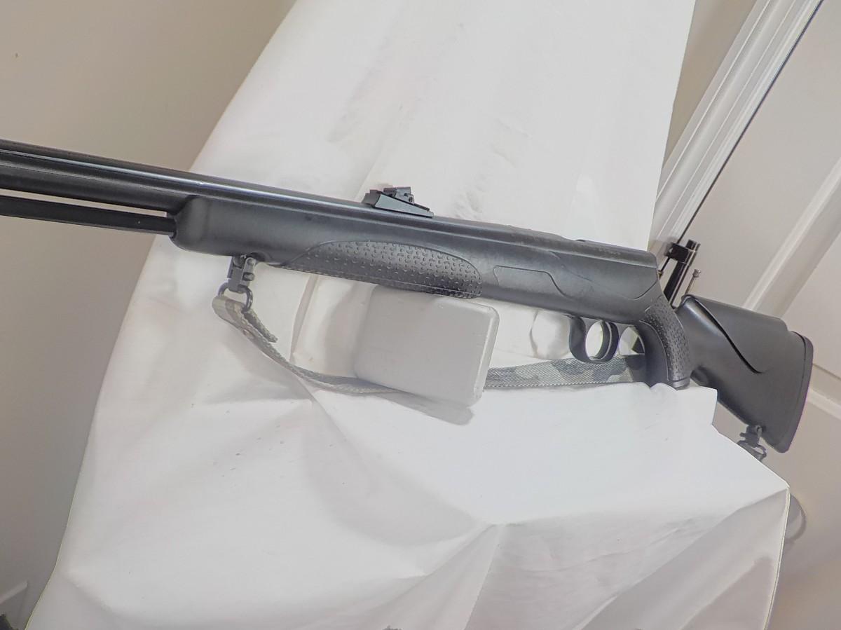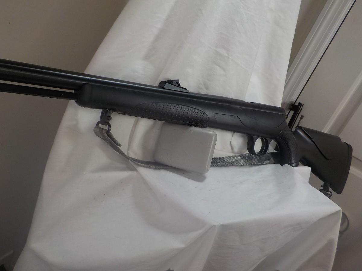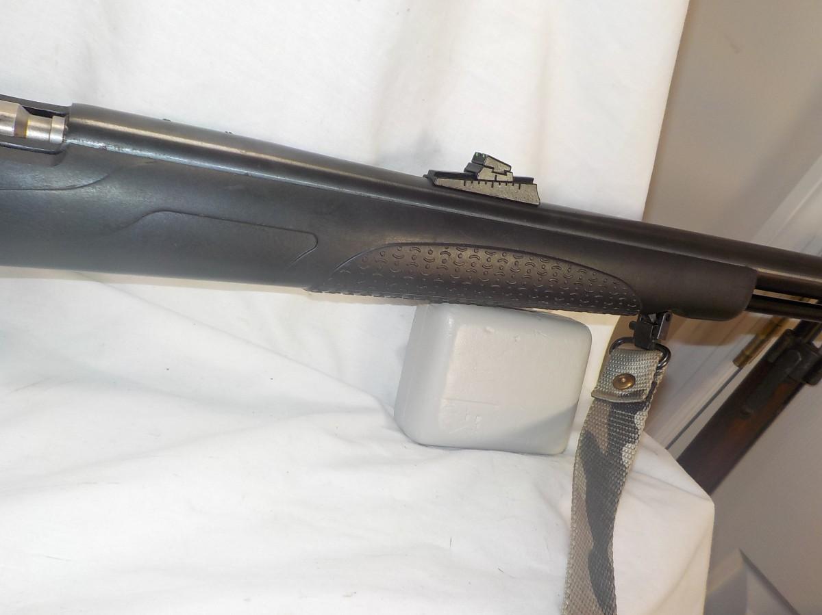 Beautiful black powder modern rifle- shotgun style. Made in Conn. this style shows accuracy for 100 yards. Bore is clean and mirror, stock is the rugged polly and able to with stand abuse of harsh conditions.