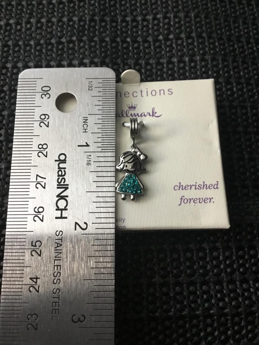 Connections hallmark stainless steel birthstone girl charm with a December blue/teal stone