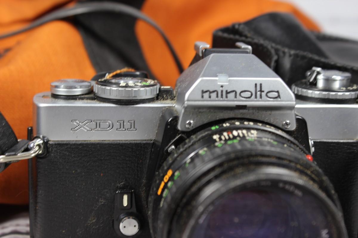 Vintage Minolta XD11 Film Camera, AF Lenses, and Camera Bag, there is no significant damage to any of the pieces and is in good vintage condition. The camera has not been tested, check pictures for more details.